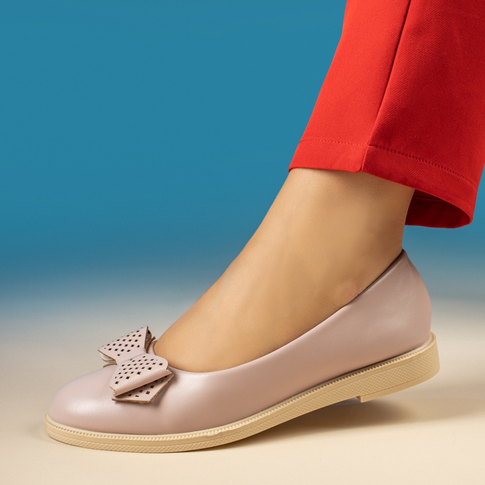 Balerini dama cu talpa joasa si fundita bej MOD11661