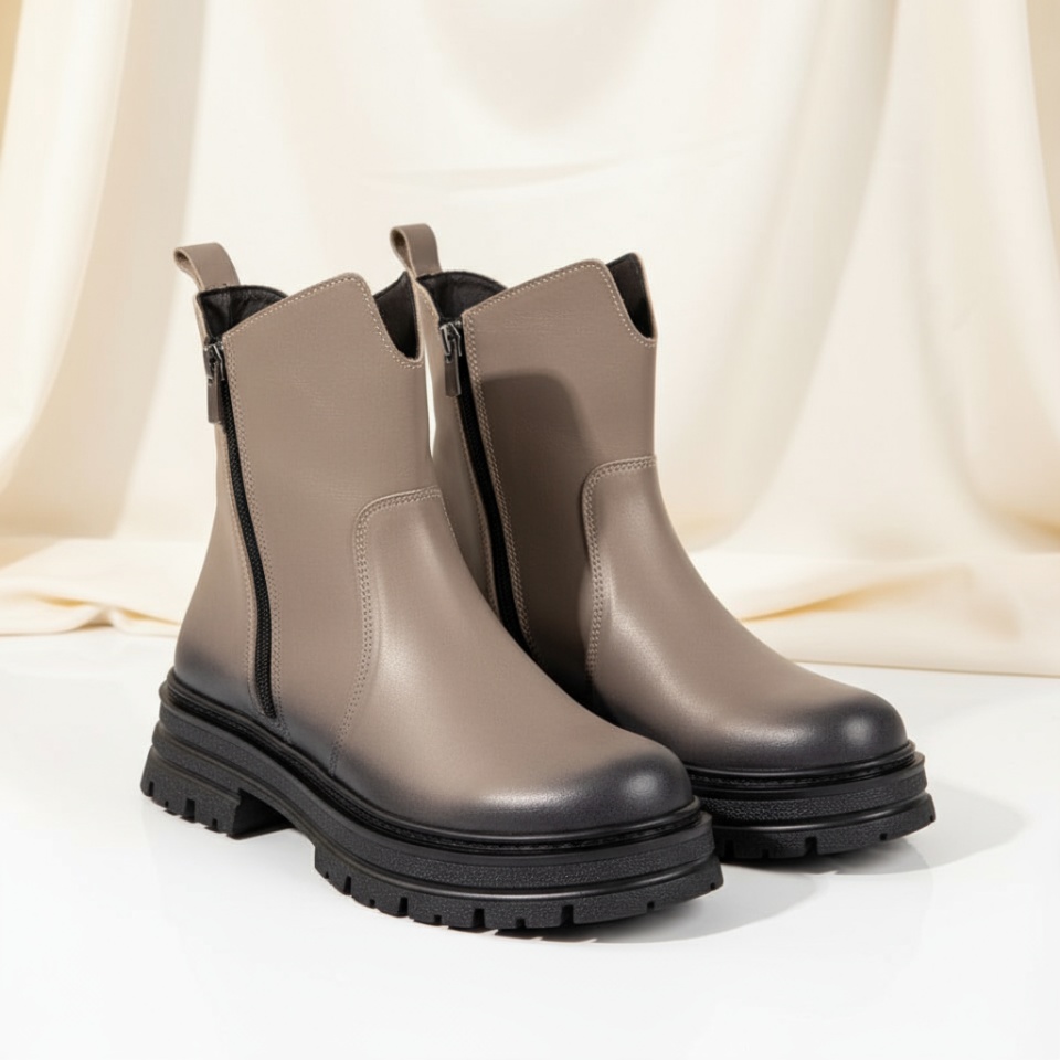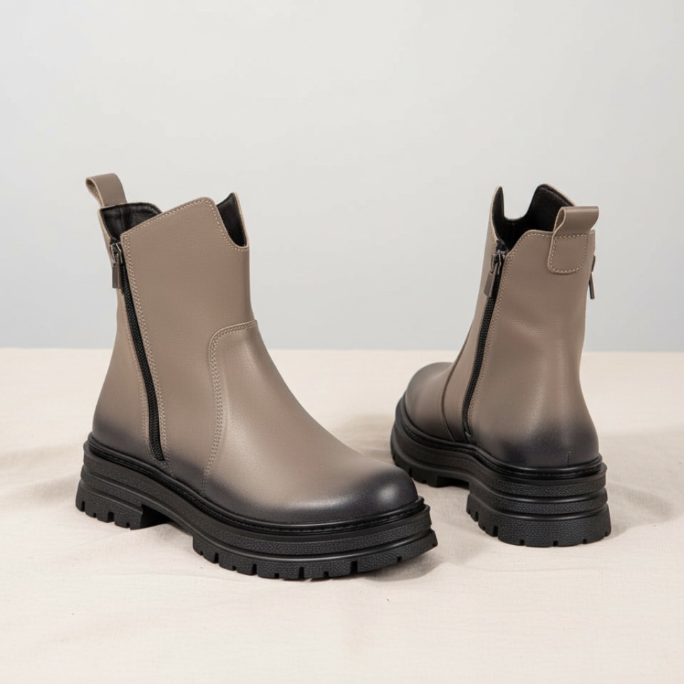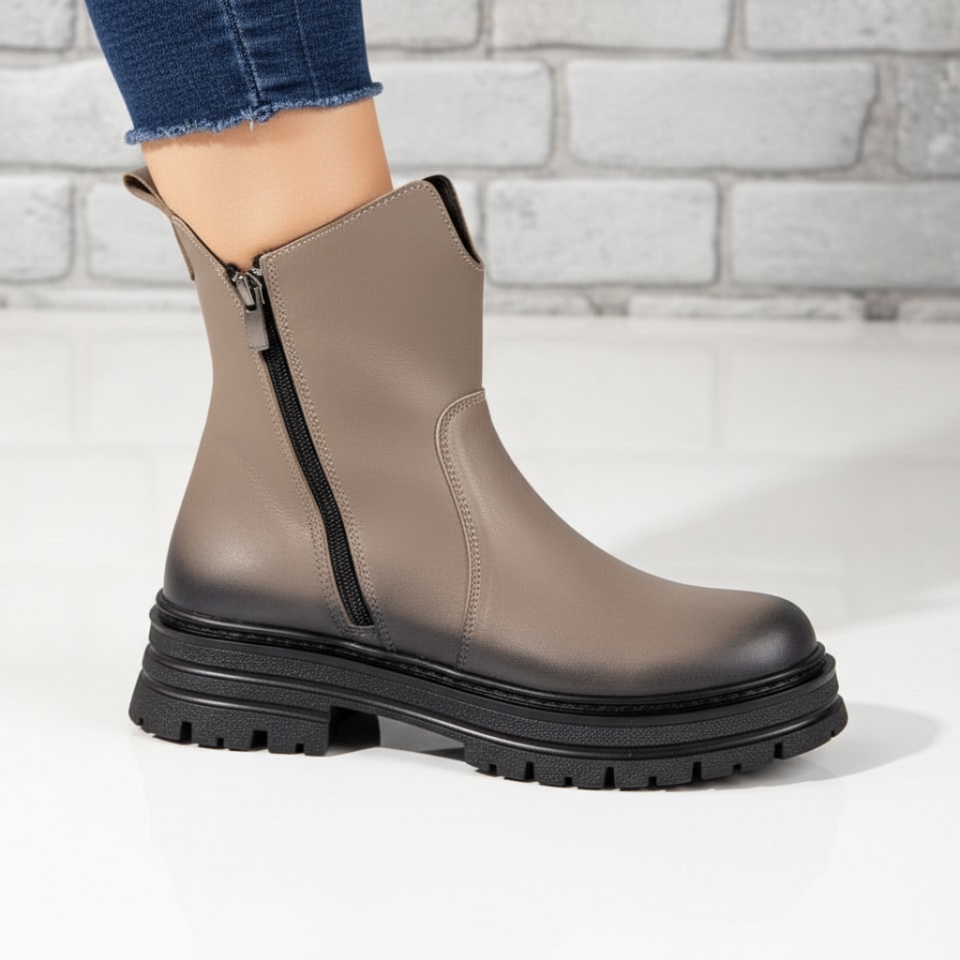 Bocanci dama cu fermoar bej din Piele naturala MOD10459