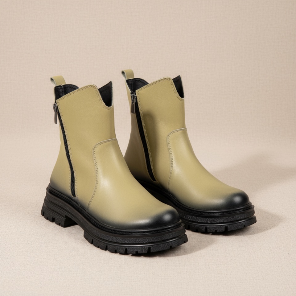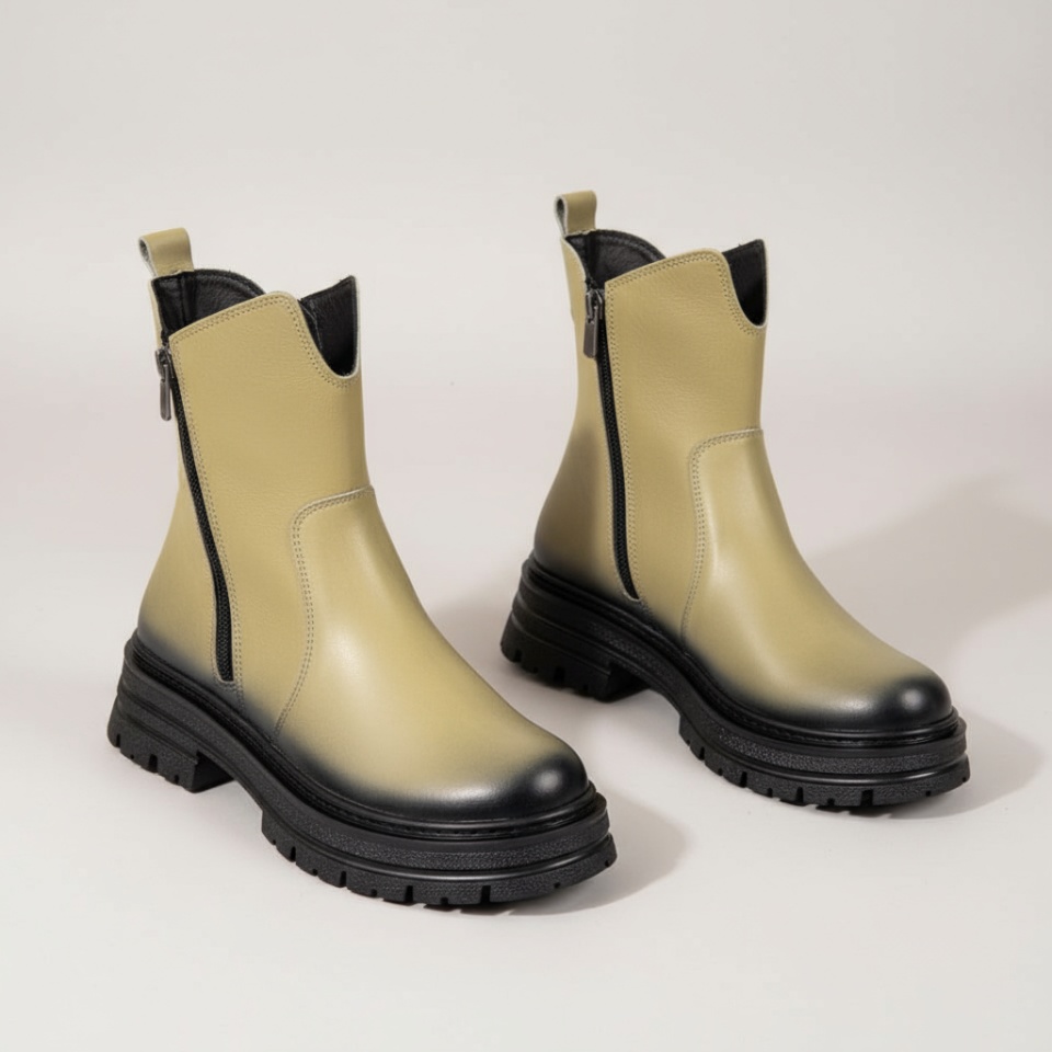 Bocanci dama cu fermoar verzi din Piele naturala MOD10459