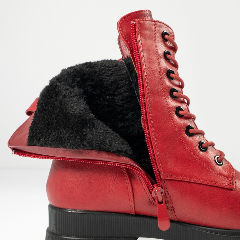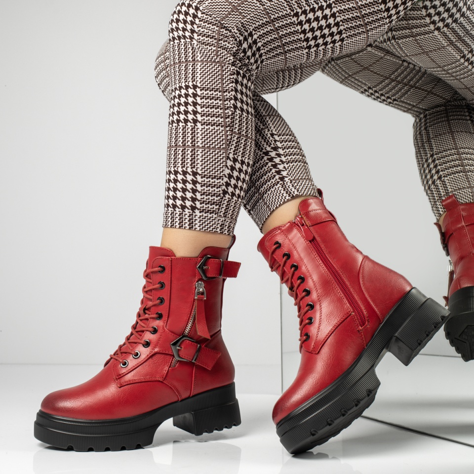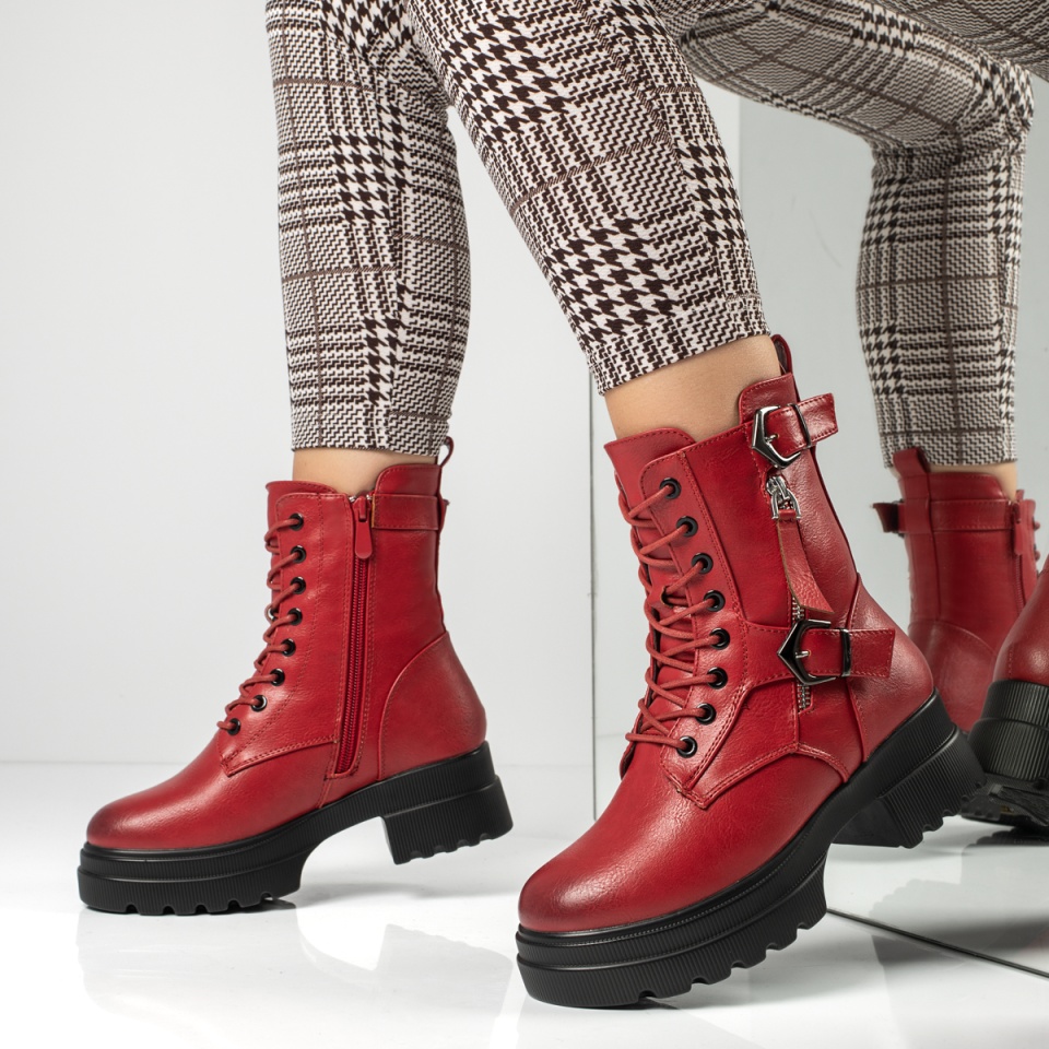 Bocanci dama cu siret si catarama rosii MOD12627