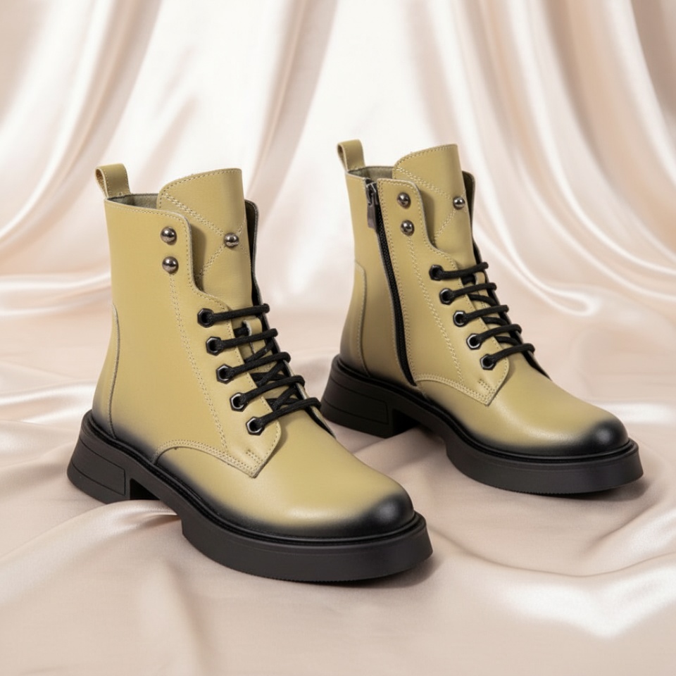Bocanci dama cu siret si fermoar verzi din Piele naturala MOD10453
