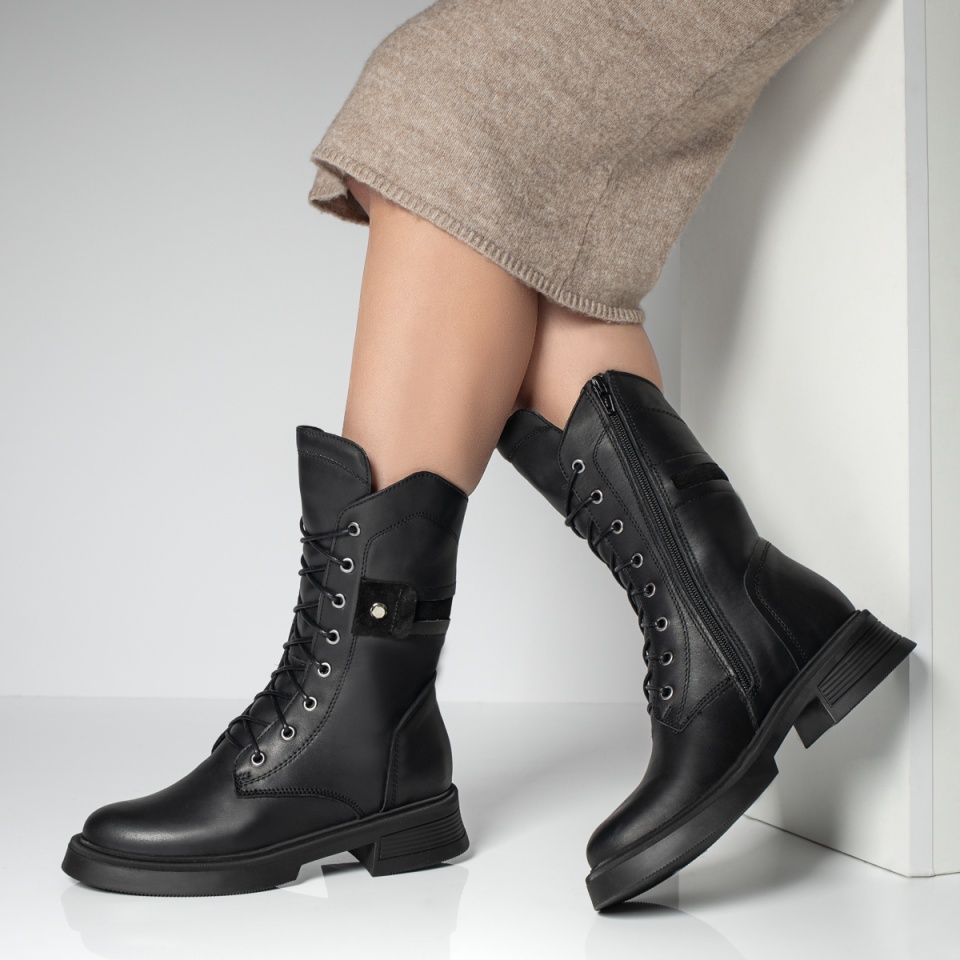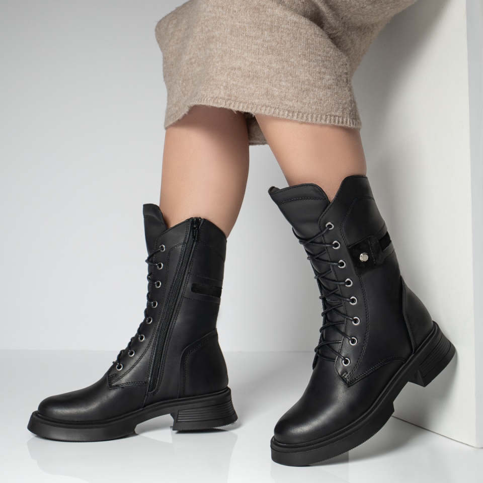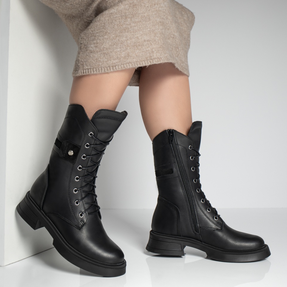 Bocanci dama negri cu siret si fermoar din Piele naturala MOD09642