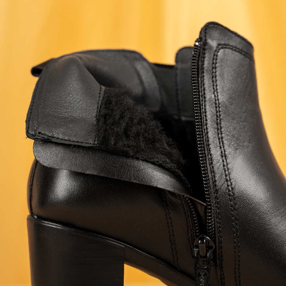 Botine dama cu toc gros negre din Piele naturala MOD05667
