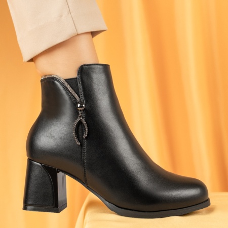 Botine dama cu toc gros si fermoar negre MOD07095