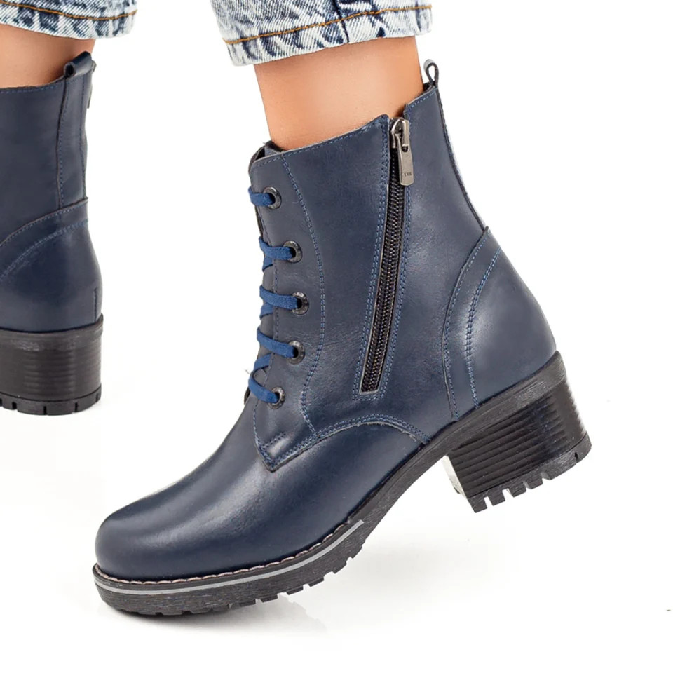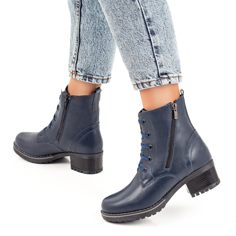 Cizme albastre dama cu siret si toc gros din Piele naturala MOD05617