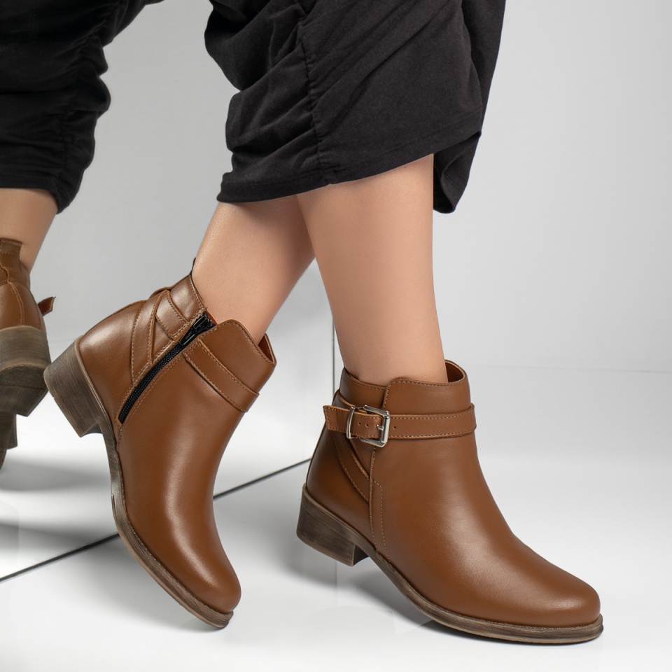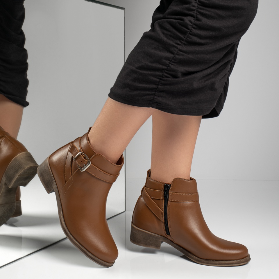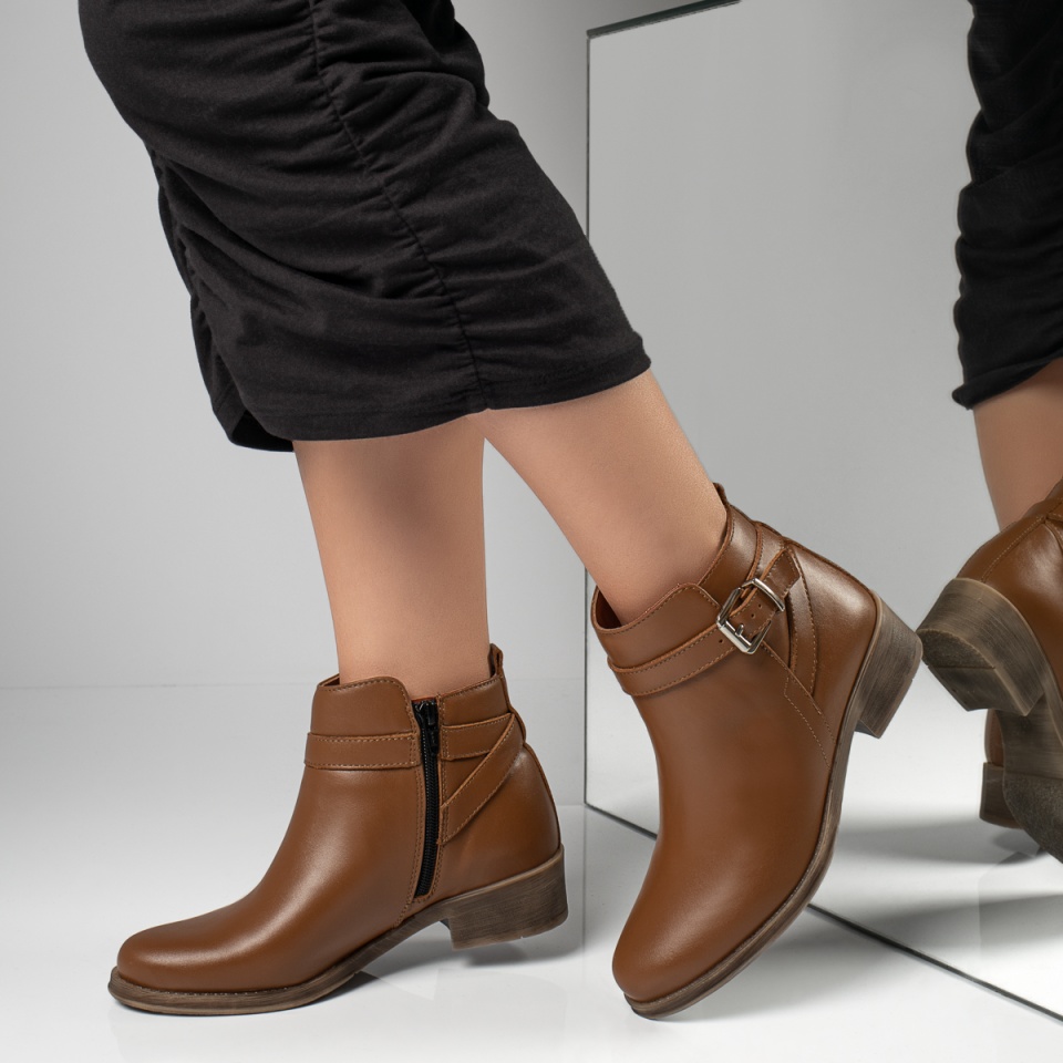 Cizme dama cu catarame maro din Piele naturala MOD06261