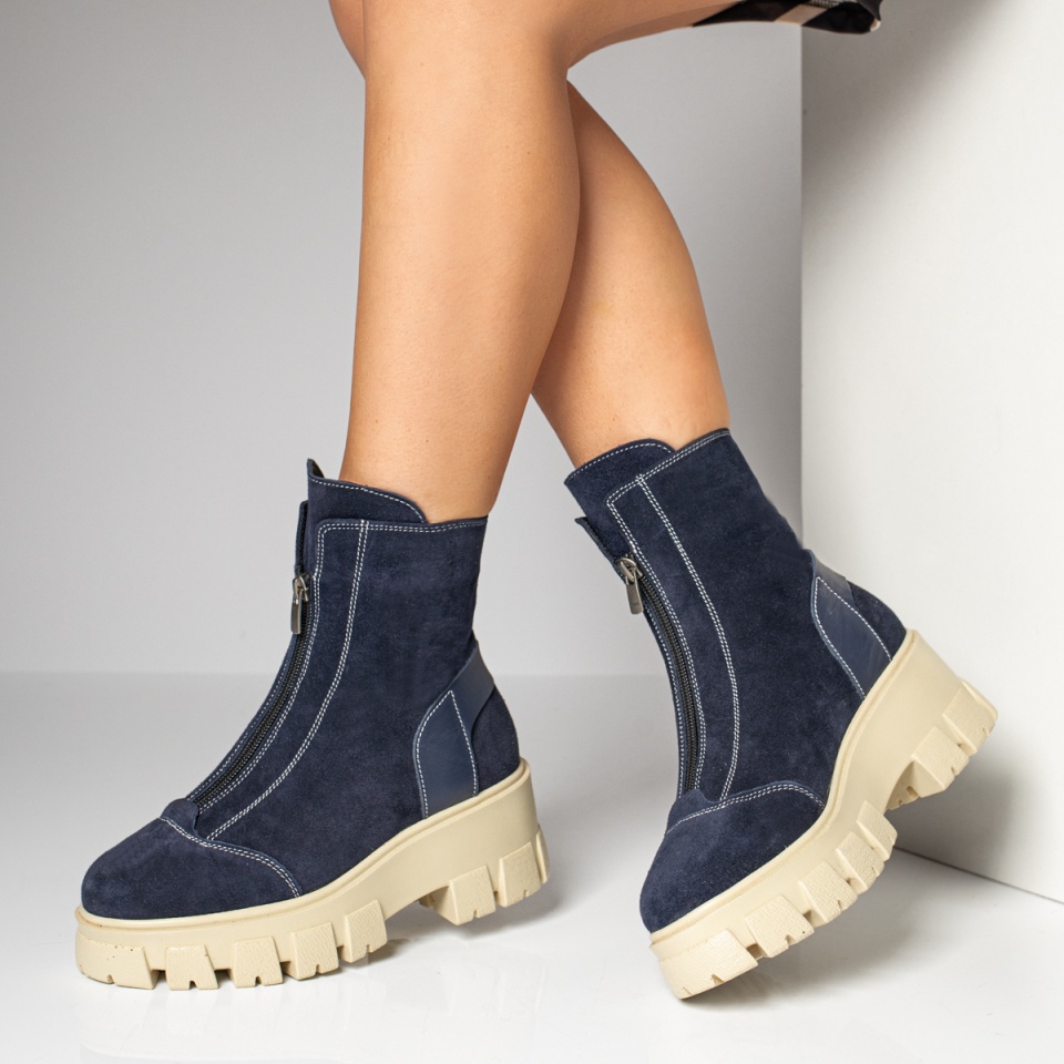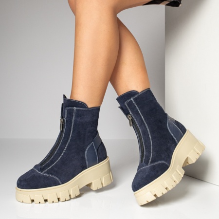 Cizme dama cu fermoar albastre suede din Piele naturala MOD06567