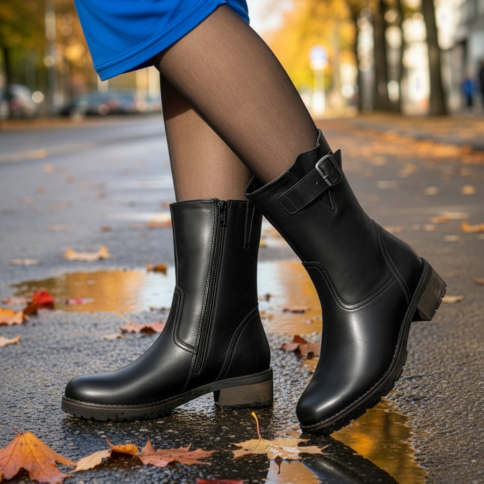 Cizme dama cu fermoar negre din Piele naturala MOD05616
