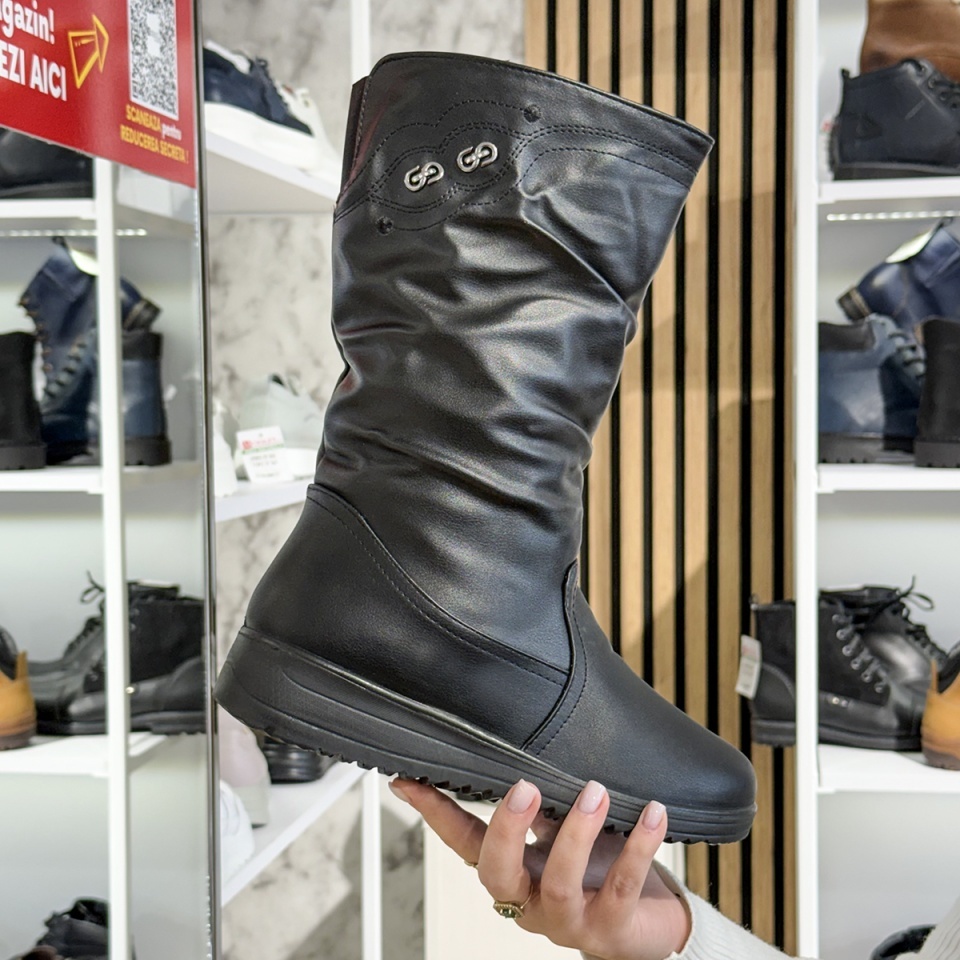 Înălțimea totală de 31 cm oferă o acoperire generoasă a piciorului, conferind un plus de stil și protecție în sezonul rece. Designul alungit avantajează silueta și oferă un look feminin, elegant și modern, fiind ideal pentru ținute de zi.