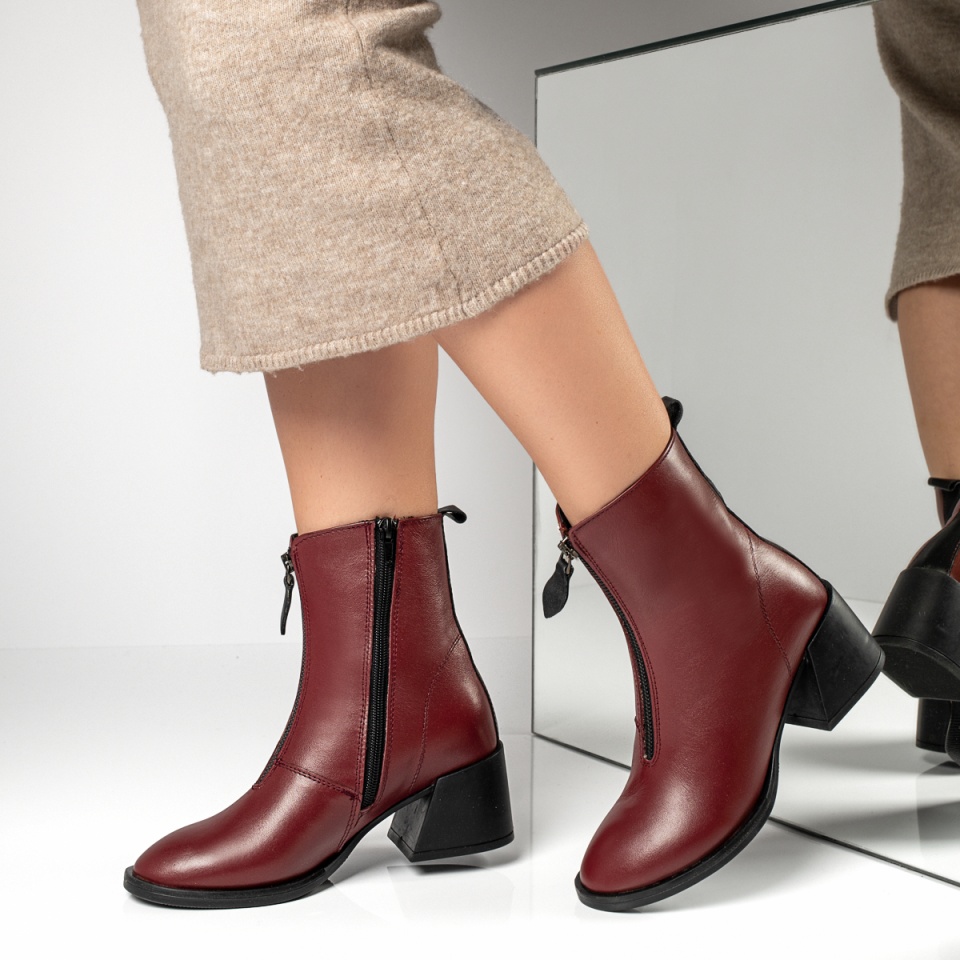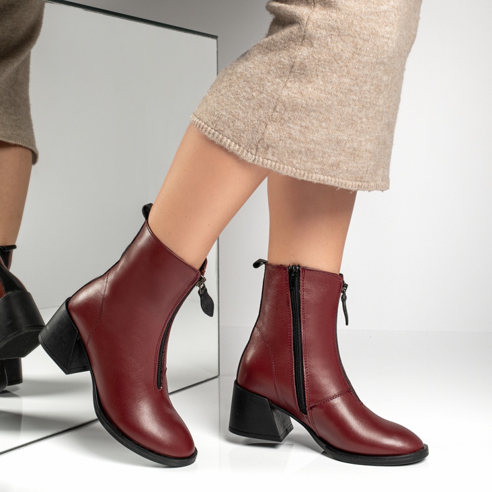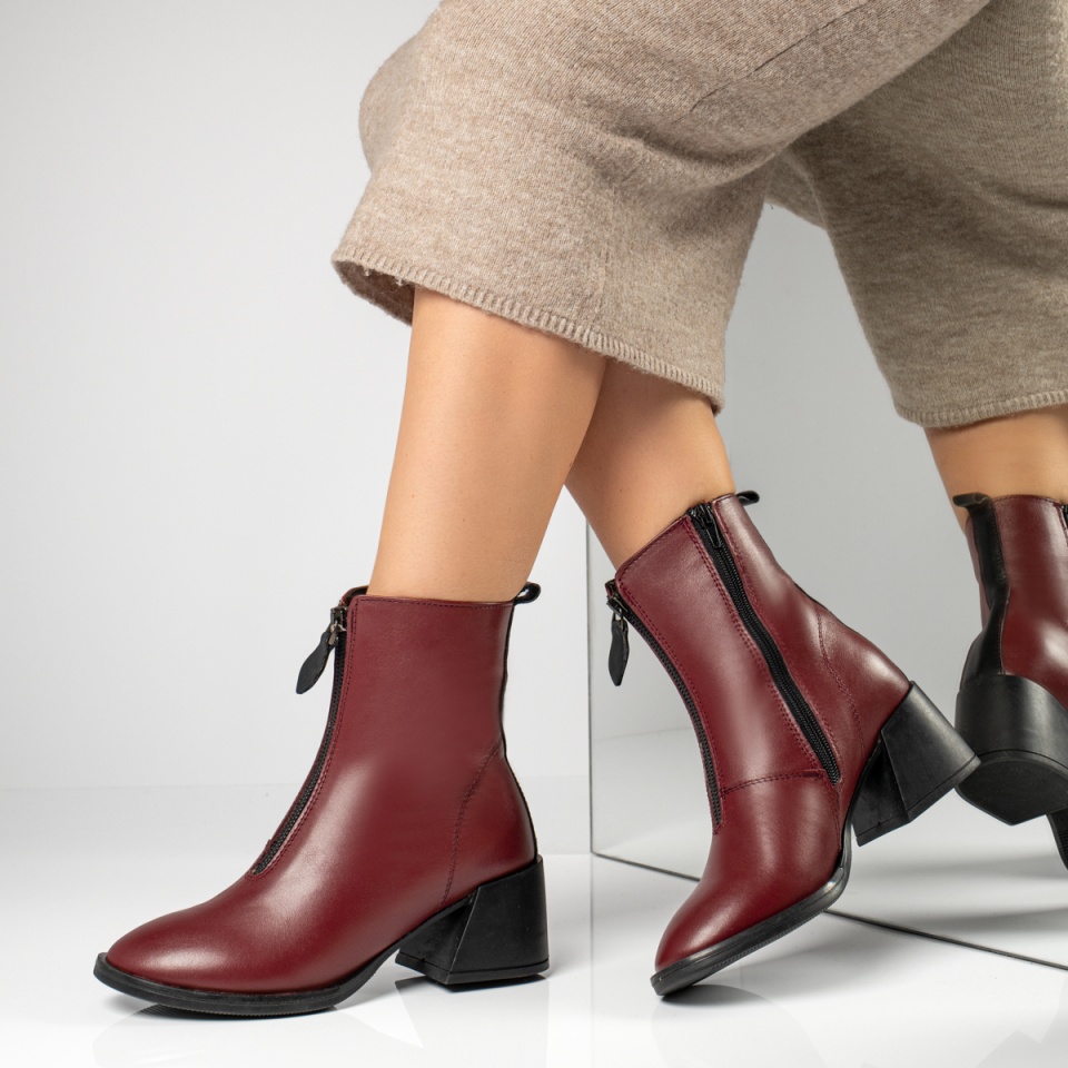 Cizme dama cu toc si fermoar visinii din Piele naturala MOD10377