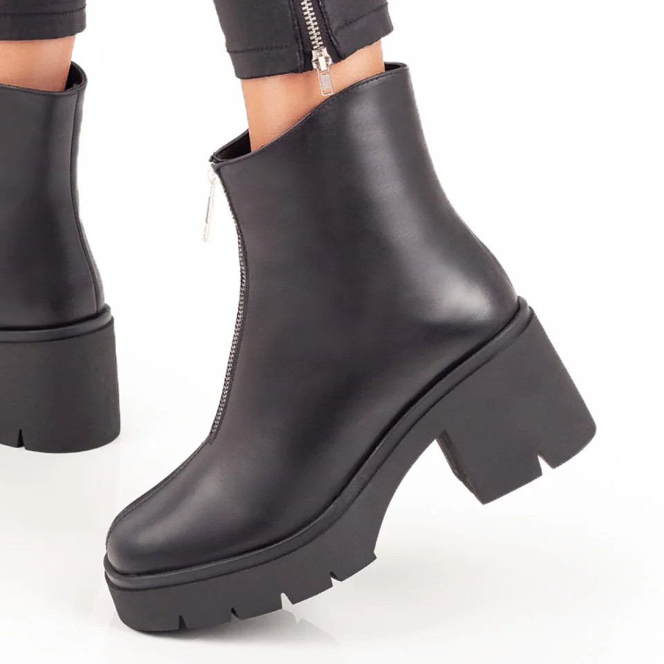 Cizme dama negre cu fermoar decorativ din Piele naturala MOD07287