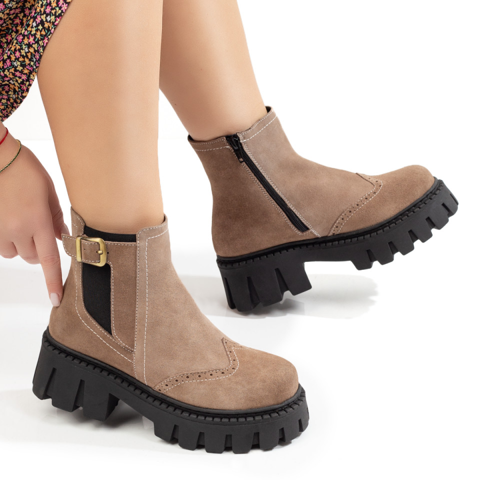 Cizme dama negre cu insertii de material elastic si talpa groasa din Piele naturala MOD05960