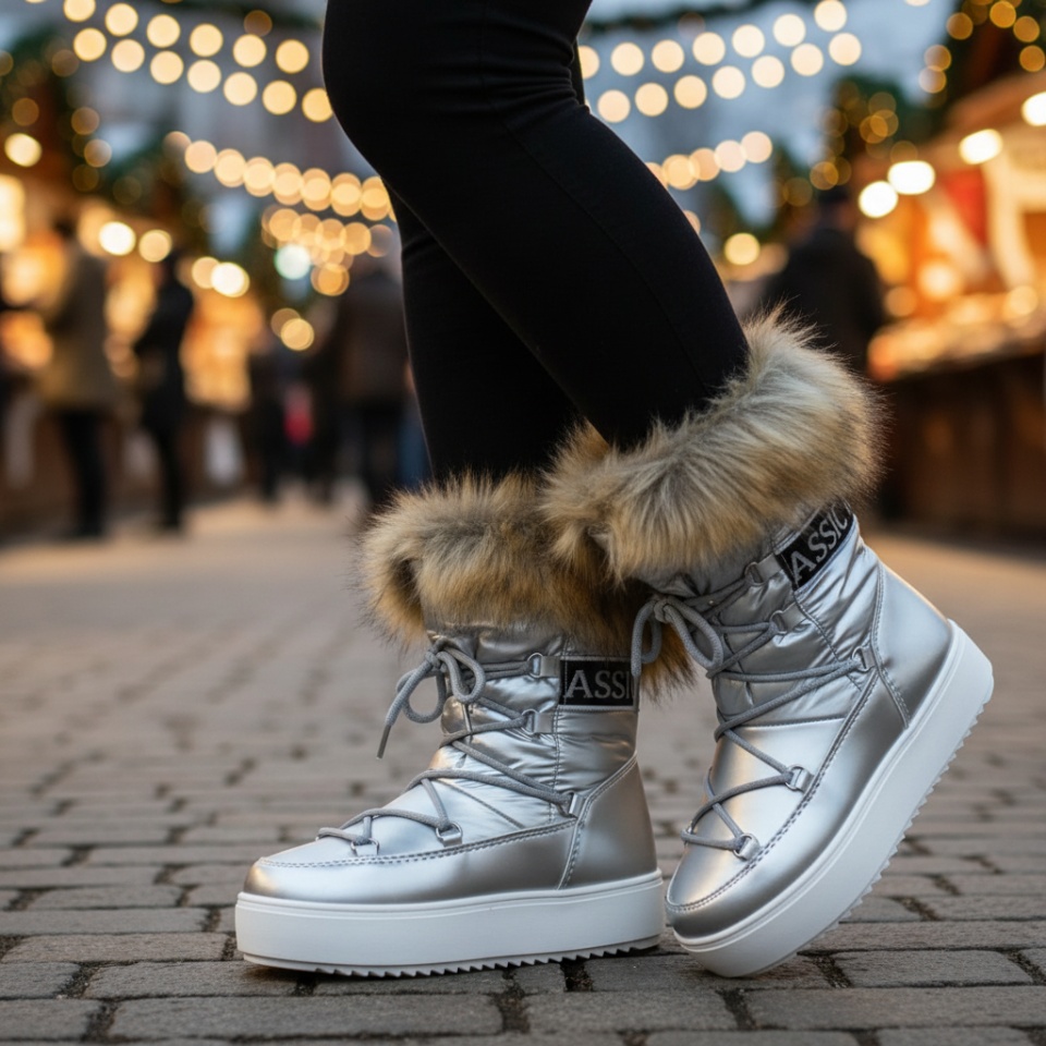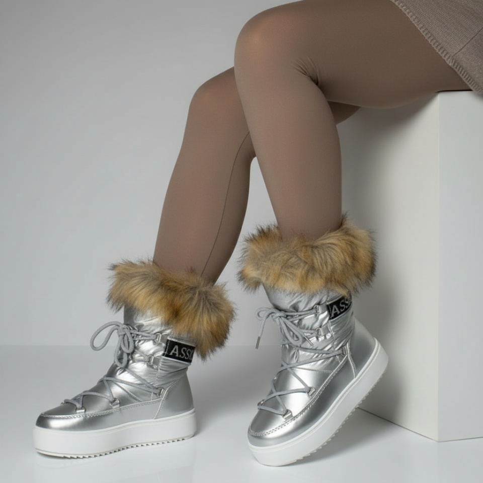 Cizme dama scurte argintii cu siret MOD12540