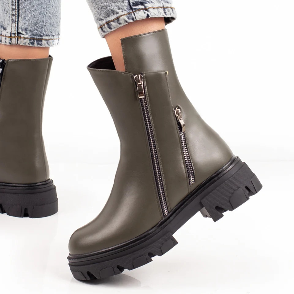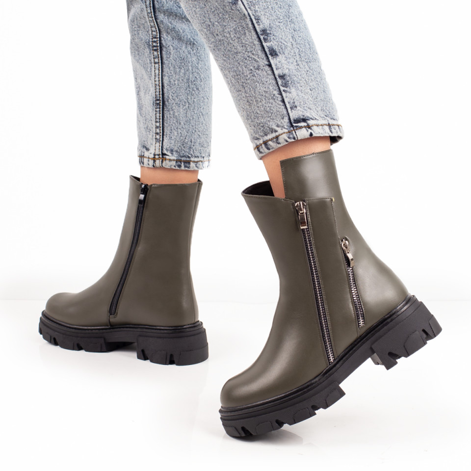Cizme dama verzi cu fermoare laterale si talpa groasa MOD06958