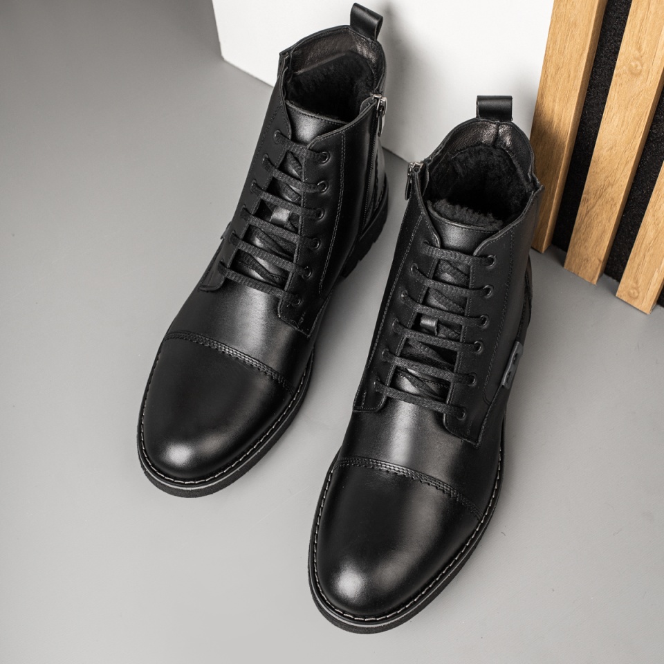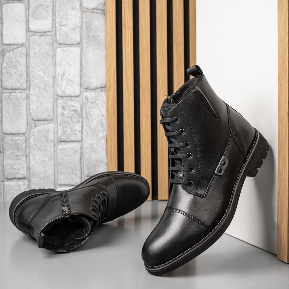 Ghete barbati cu siret si fermoar negre din Piele naturala MOD10570