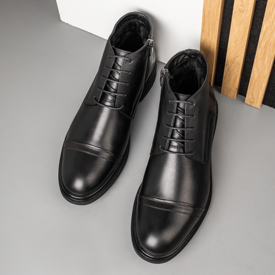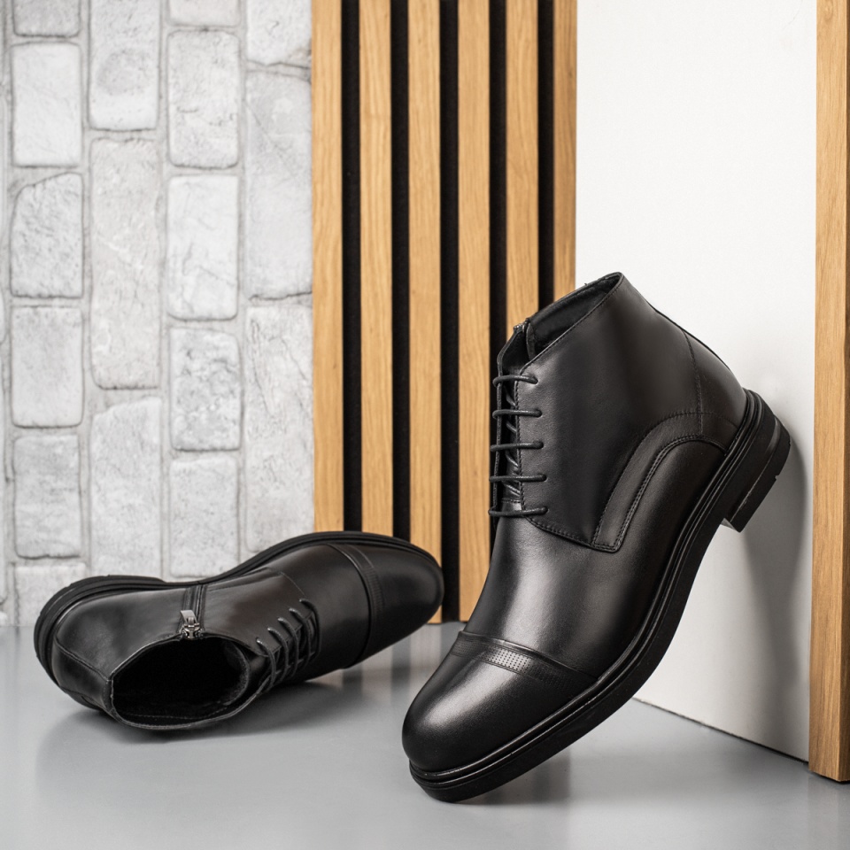 Ghete barbati cu siret si fermoar negre din Piele naturala MOD14074