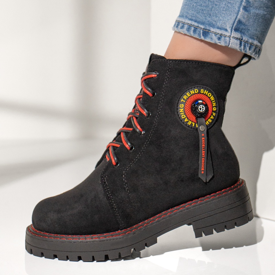 Ghete cu siret si fermoar dama negre cu rosu suede MOD07156