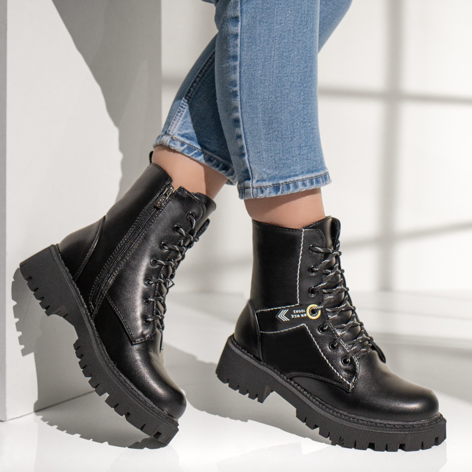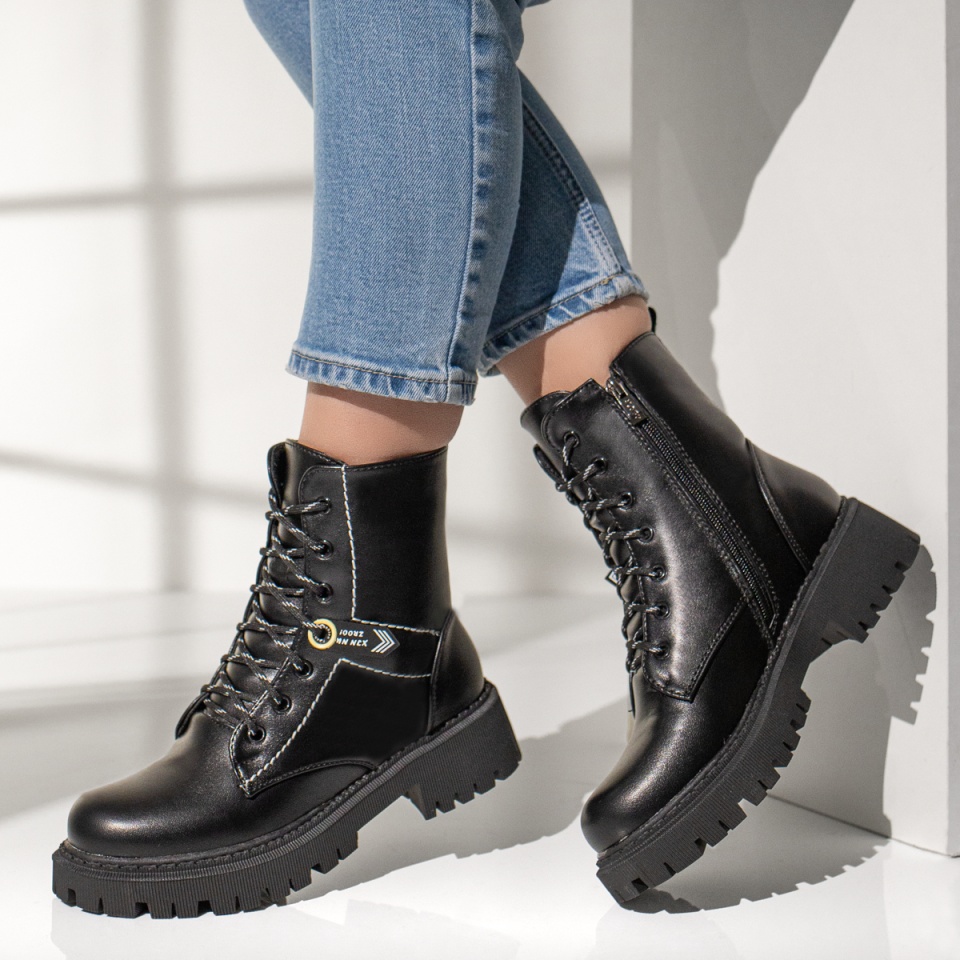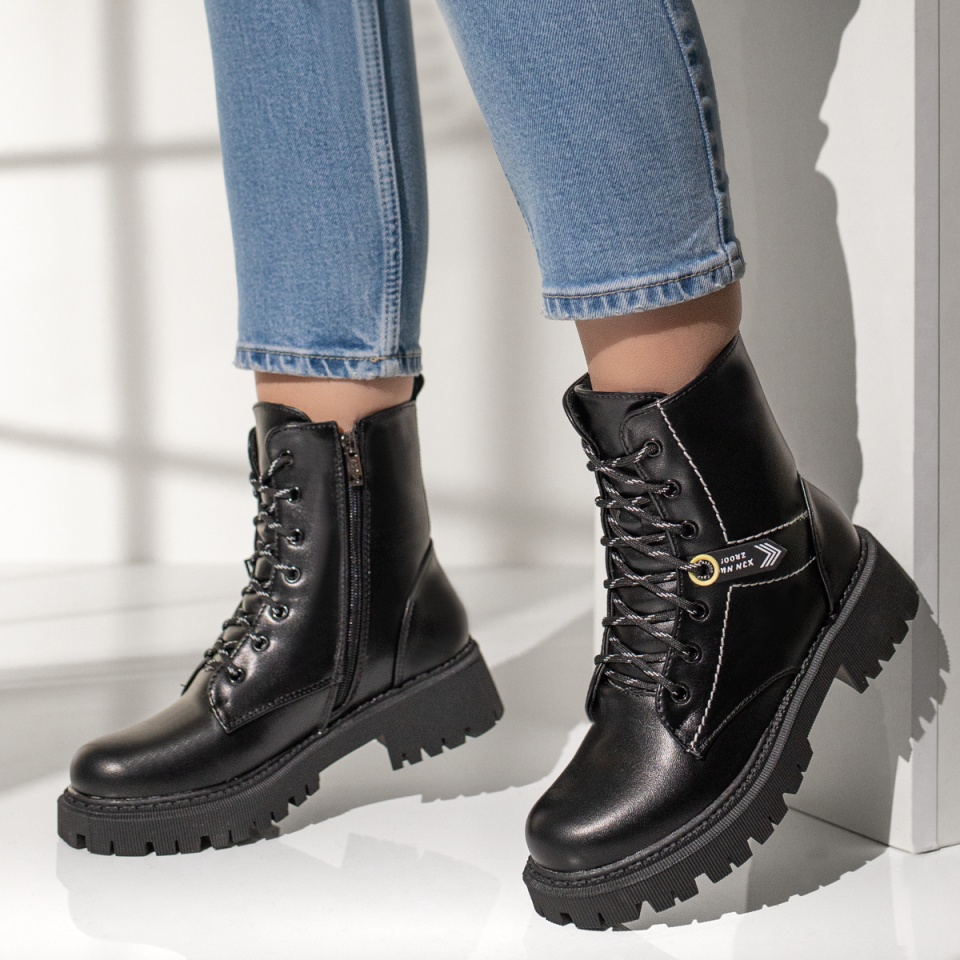 Ghete cu siret, talpa groasa si fermoar dama negre MOD07167