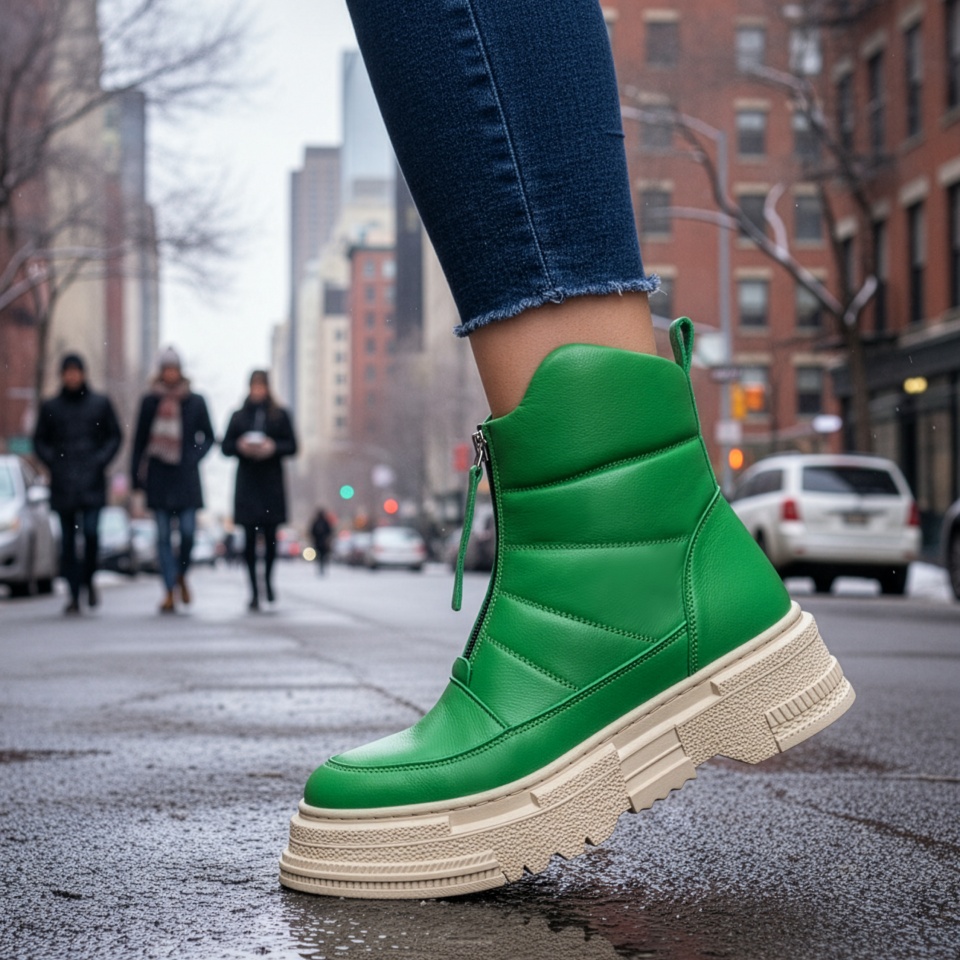 Ghete dama cu fermoar si talpa groasa verzi din Piele naturala MOD10460