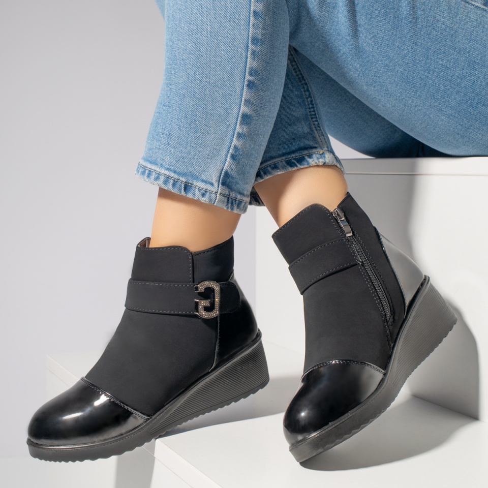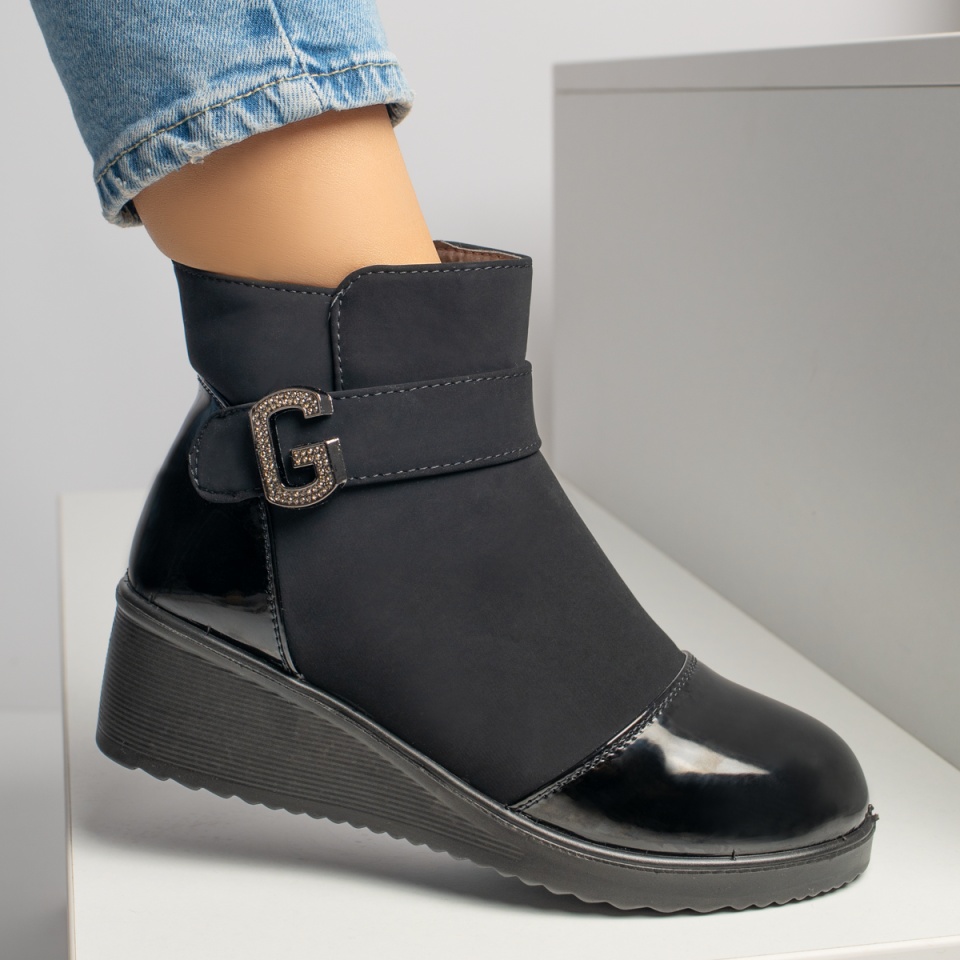 Ghete dama cu platforma cu varf lucios negre MOD12231