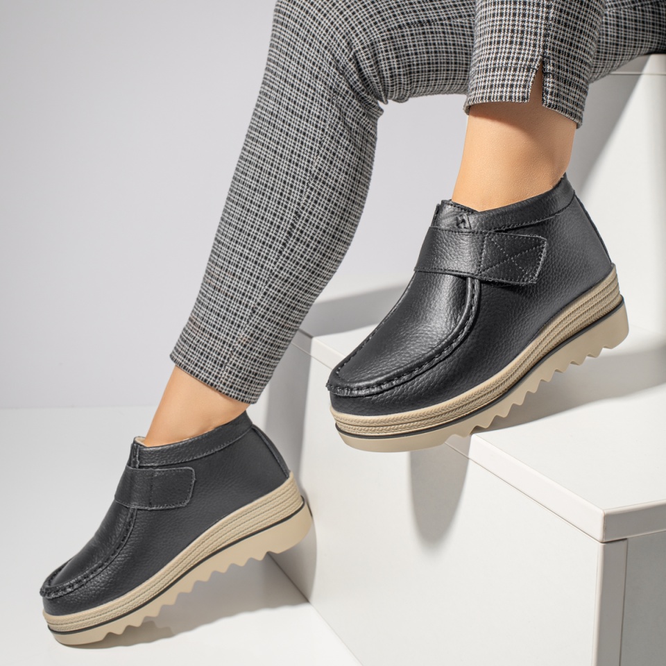 Nuanța de negru conferă acestor ghete un caracter clasic și o versatilitate remarcabilă. Este o alegere practică, ușor de asortat cu diverse stiluri vestimentare, de la casual la office.