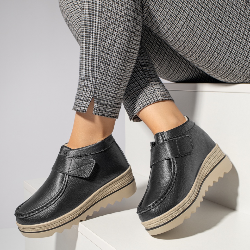 Ghete dama cu platforma si inchidere cu scai negre din Piele naturala MOD10254