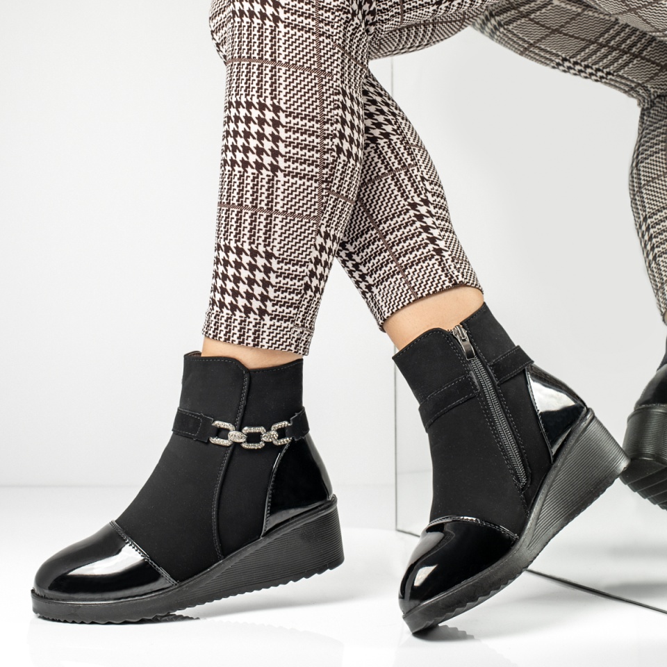 Ghete dama cu platforma si varf lucios negru suede MOD14165