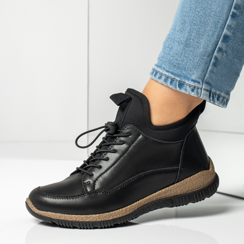 Ghete dama cu siret elastic si fermoar negre din Piele naturala MOD14004