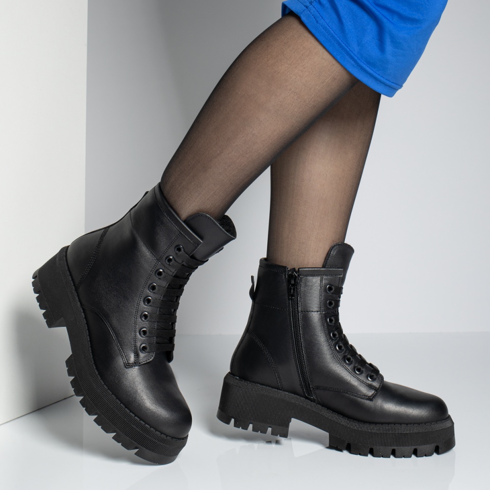 Ghete dama cu siret negre din Piele naturala MOD10664
