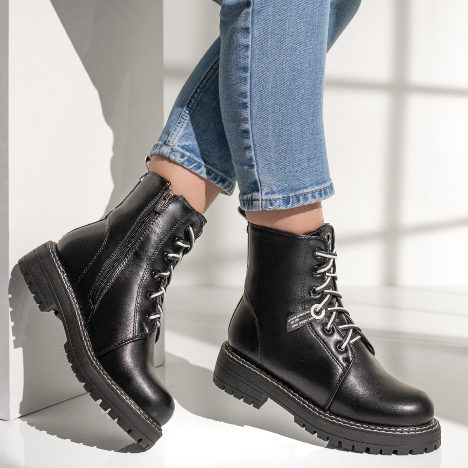 Ghete dama cu siret si fermoar negre MOD07143