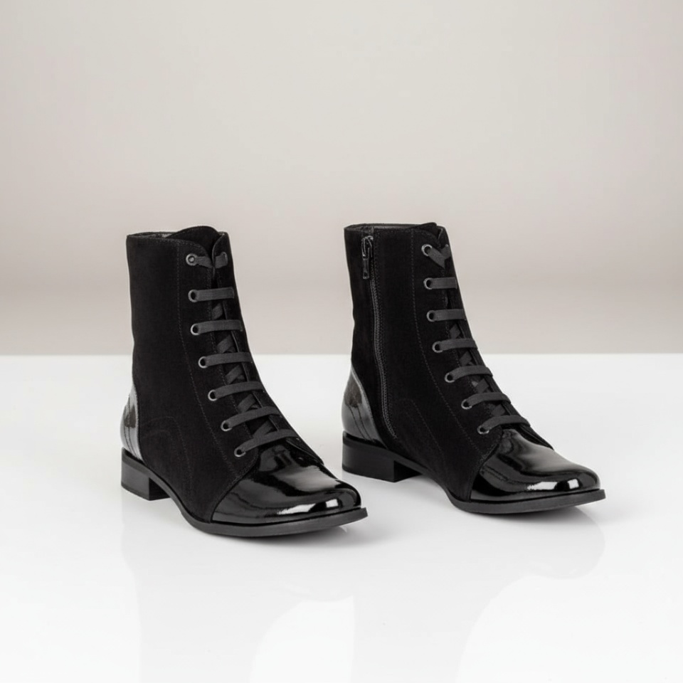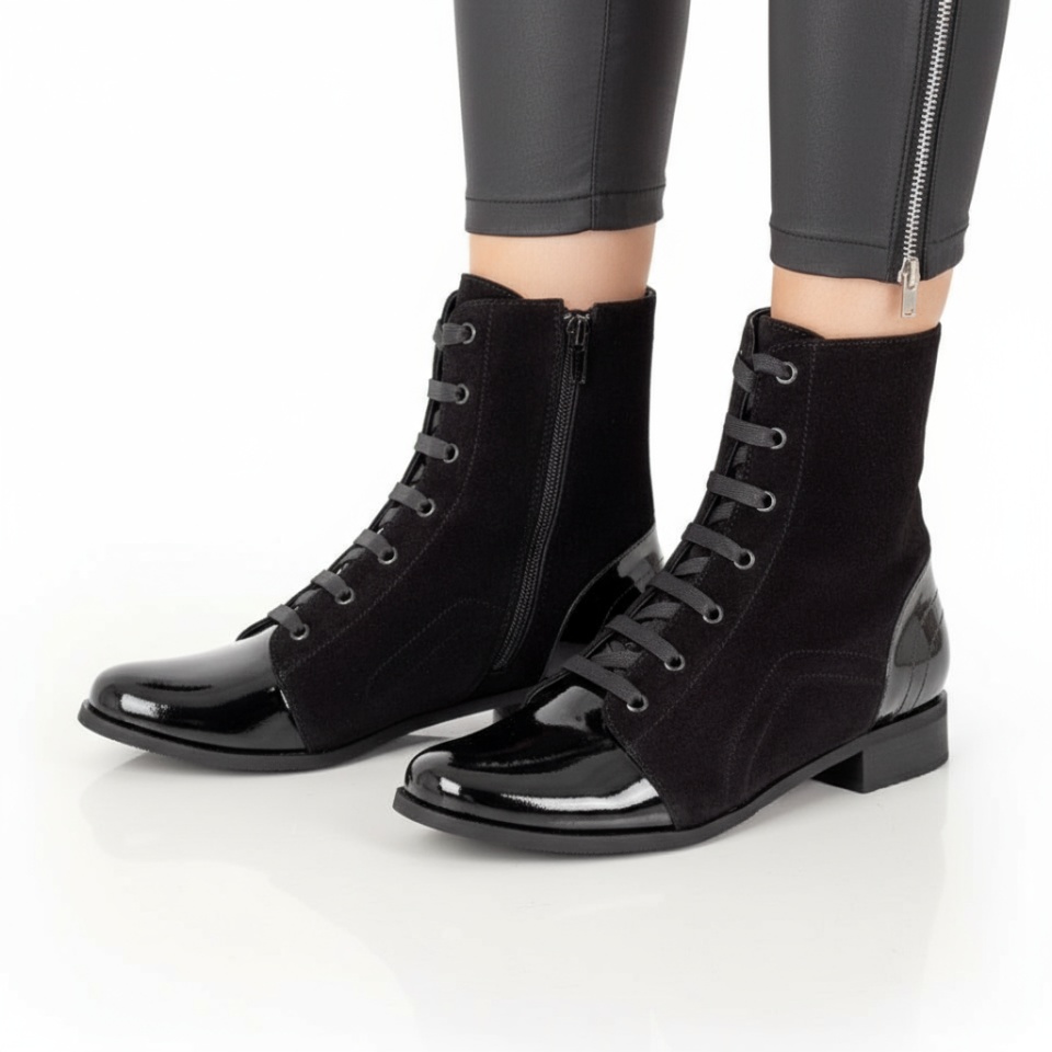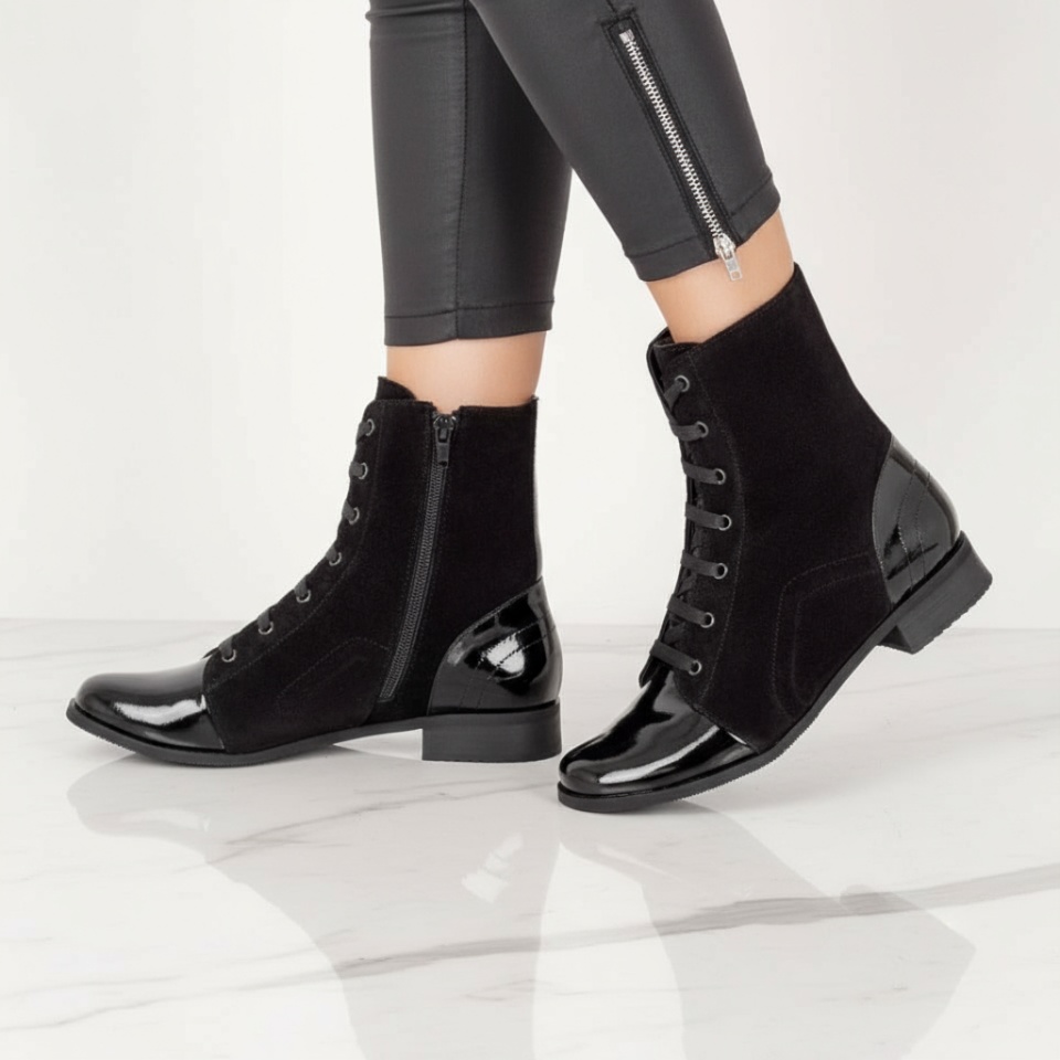 Ghete dama cu siret si fermoar negru suede din Piele naturala MOD07602