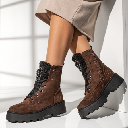 Ghete dama cu siret si pietre aplicate maro cu negru suede MOD14068