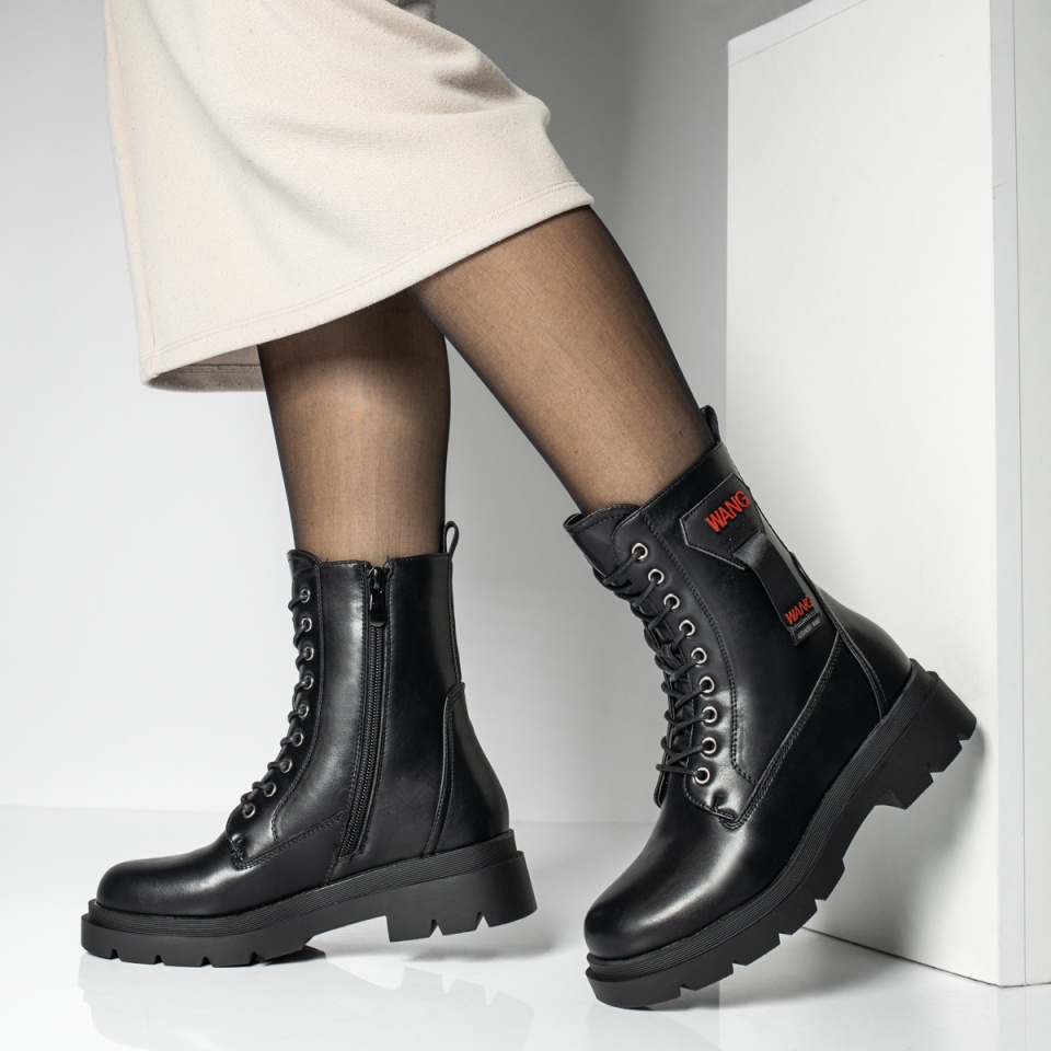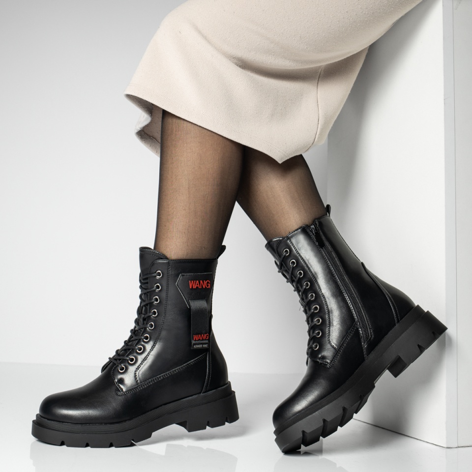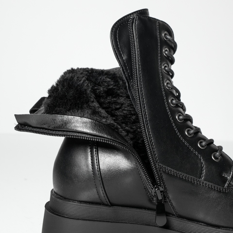 Ghete dama cu siret si talpa groasa negre MOD12842