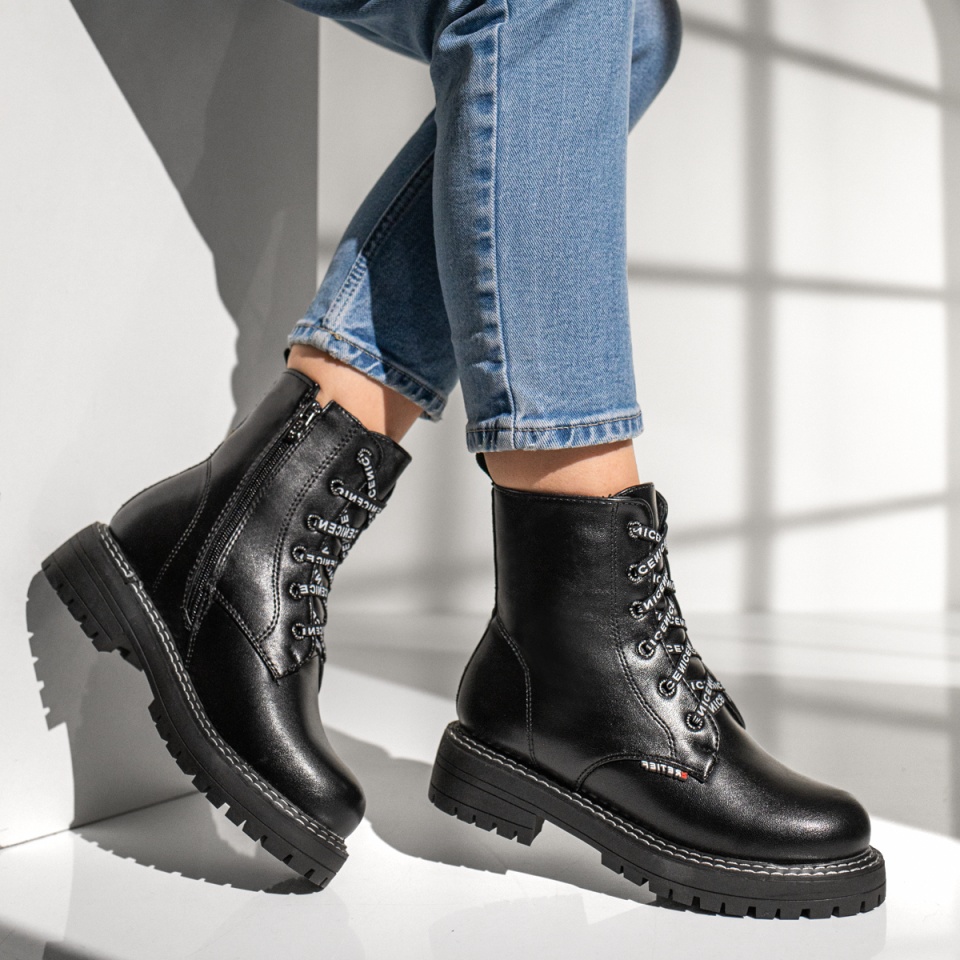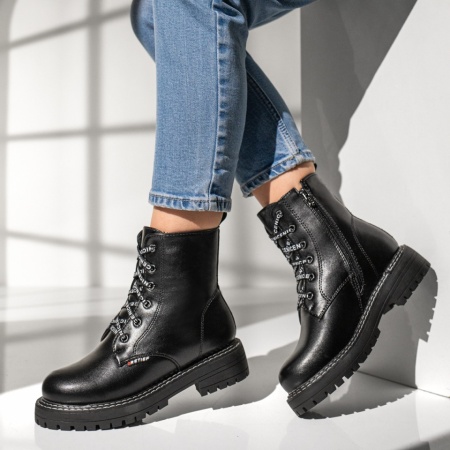 Ghete dama cu talpa groasa si fermoar negre MOD07158