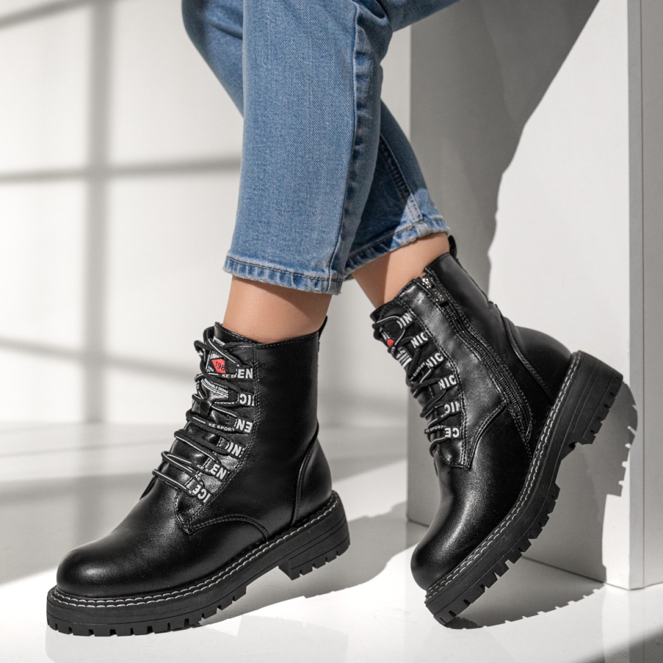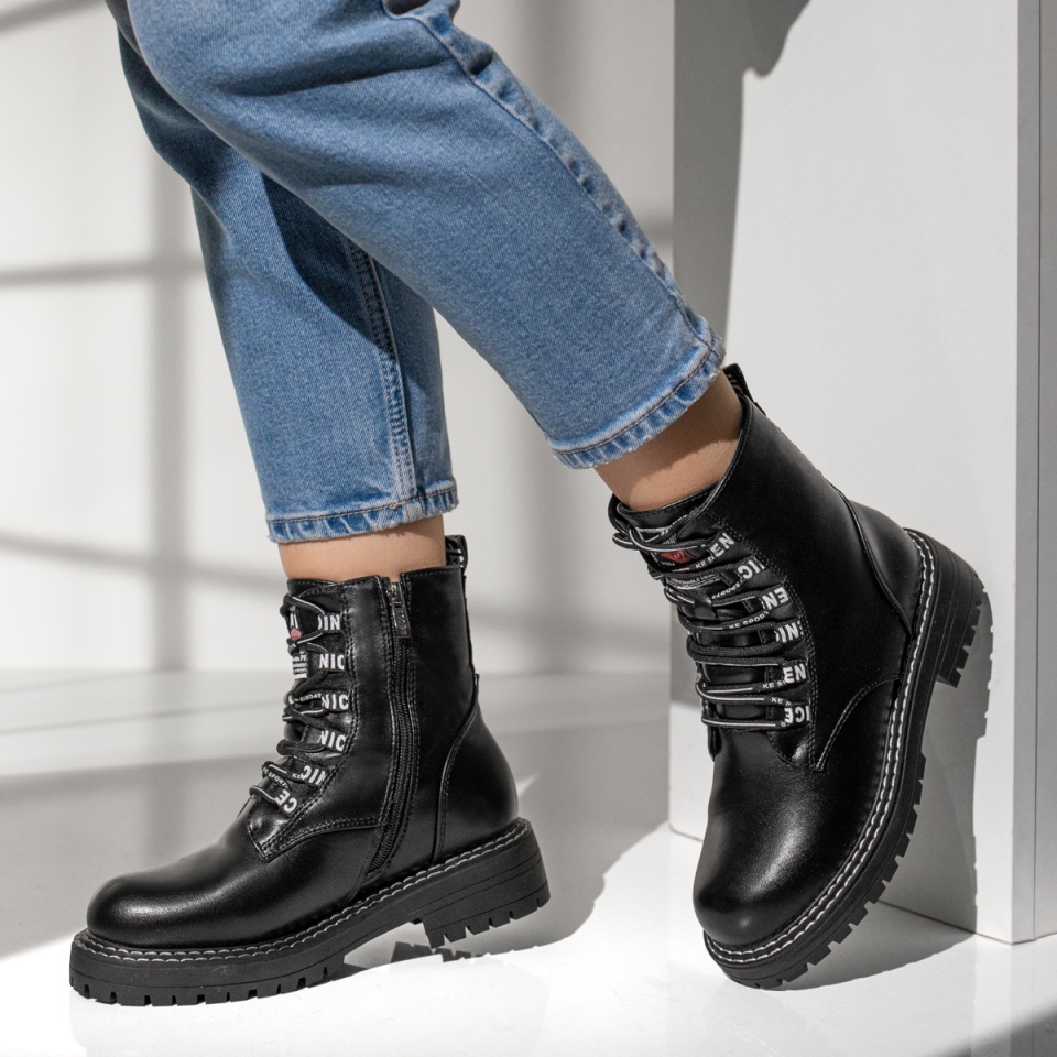 Ghete dama cu talpa groasa si fermoar si siret negre MOD07145