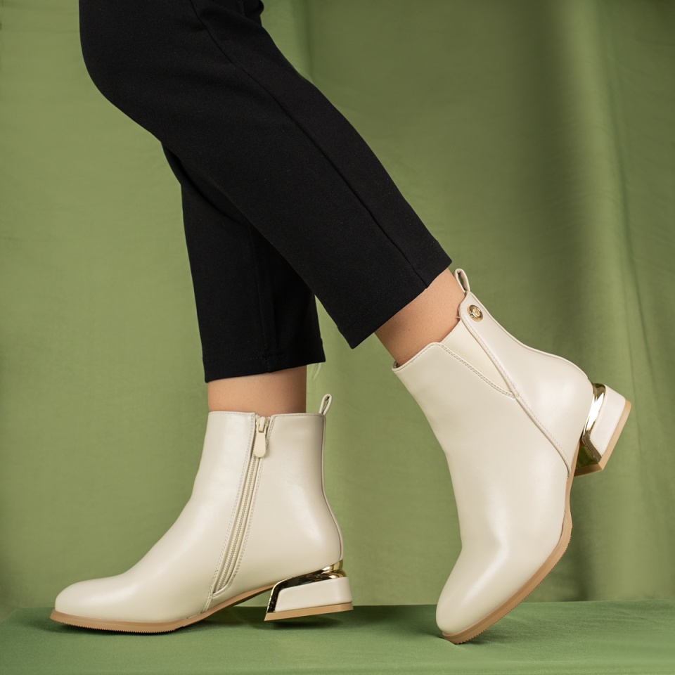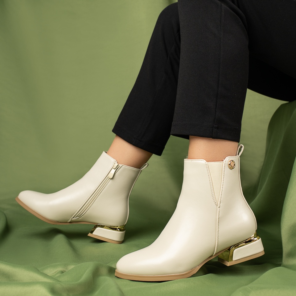 Ghete dama cu toc gros si insertie de material elastic bej MOD07099