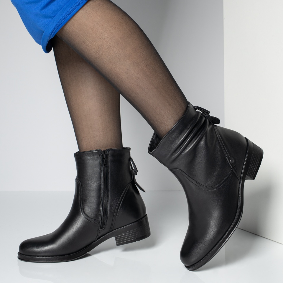Ghete dama cu toc mic si fermoar negre din Piele naturala MOD05668