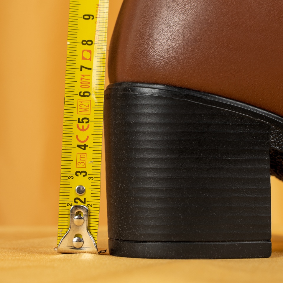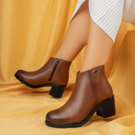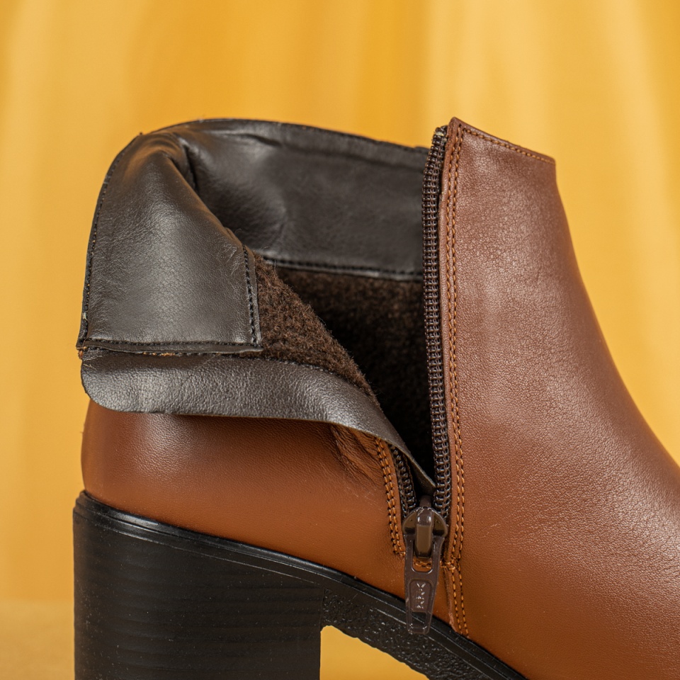 Ghete dama cu toc si fermoar maro din Piele naturala MOD05610