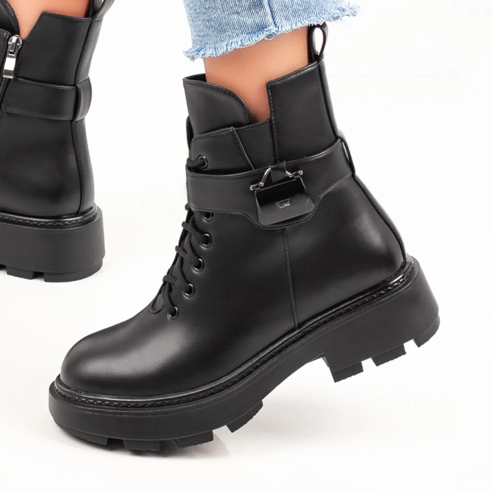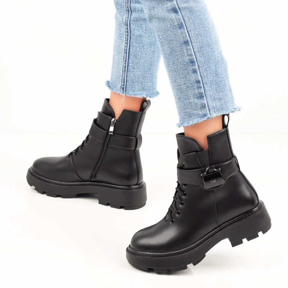 Ghete dama negre cu siret si fermoar MOD07015
