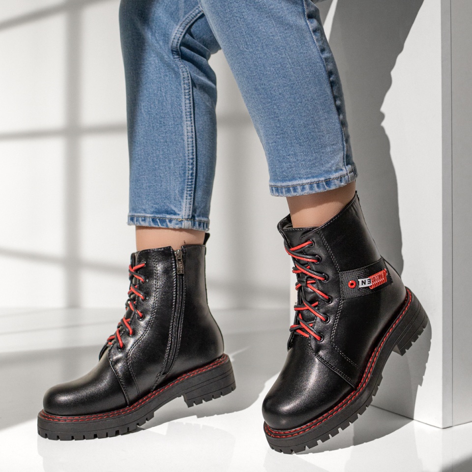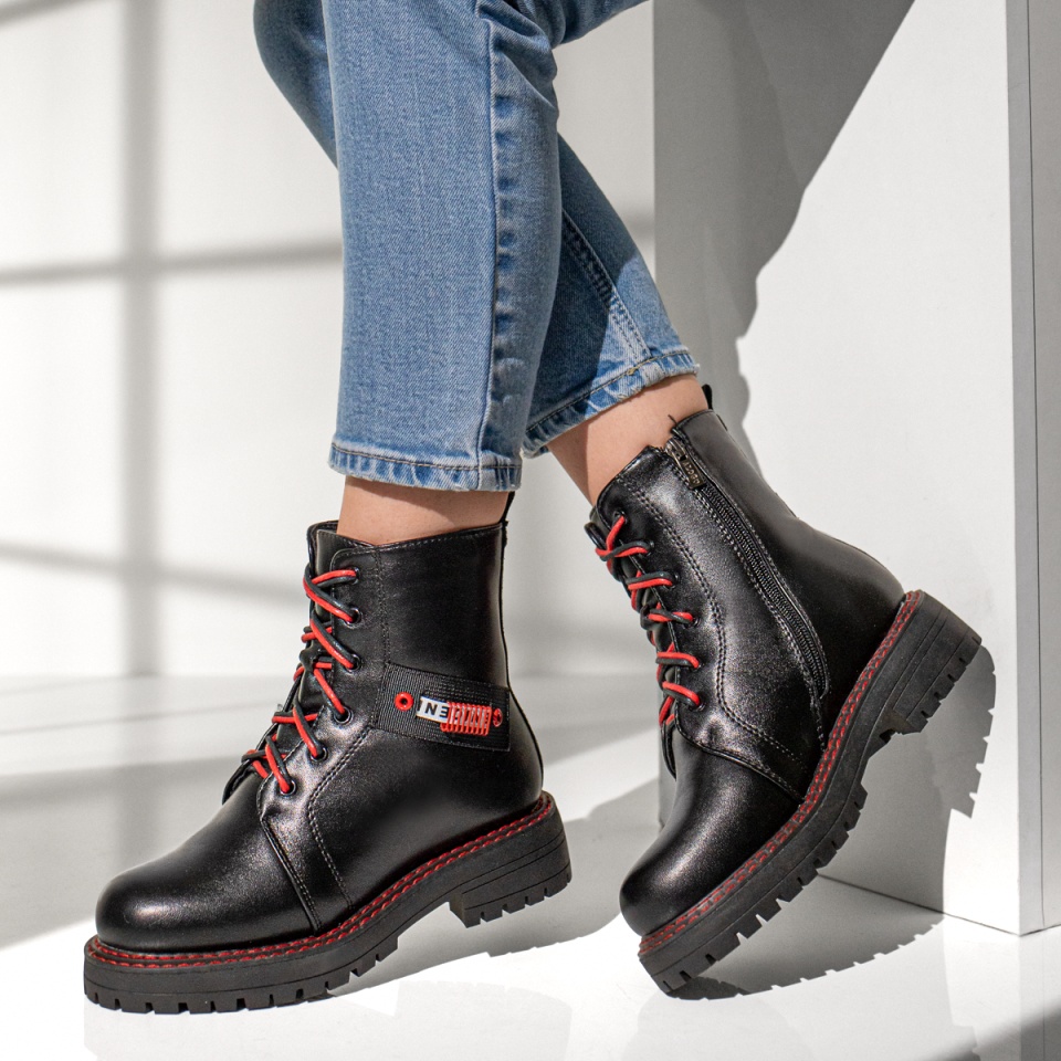 Ghete dama negri cu fermoar si insertie textila MOD07159