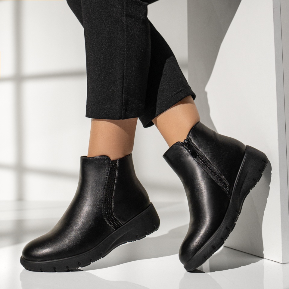 Ghete dama scurte cu fermoar negre MOD14083