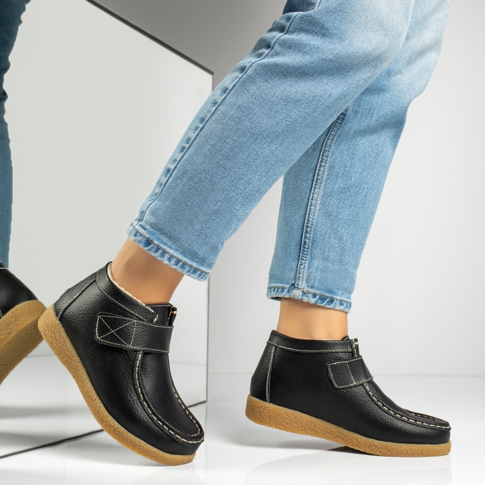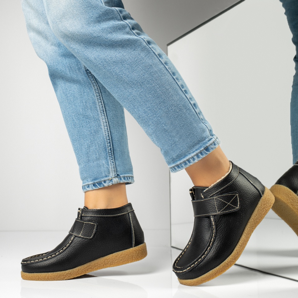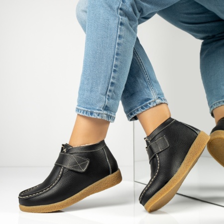 Ghete dama scurte cu scai negre din Piele naturala MOD06605