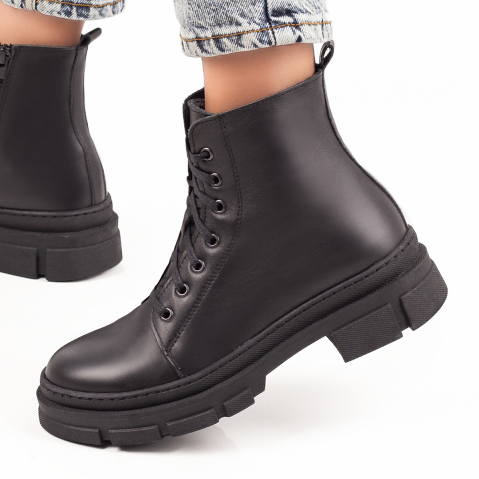Ghete negre cu siret si fermoar dama din Piele naturala MOD07052