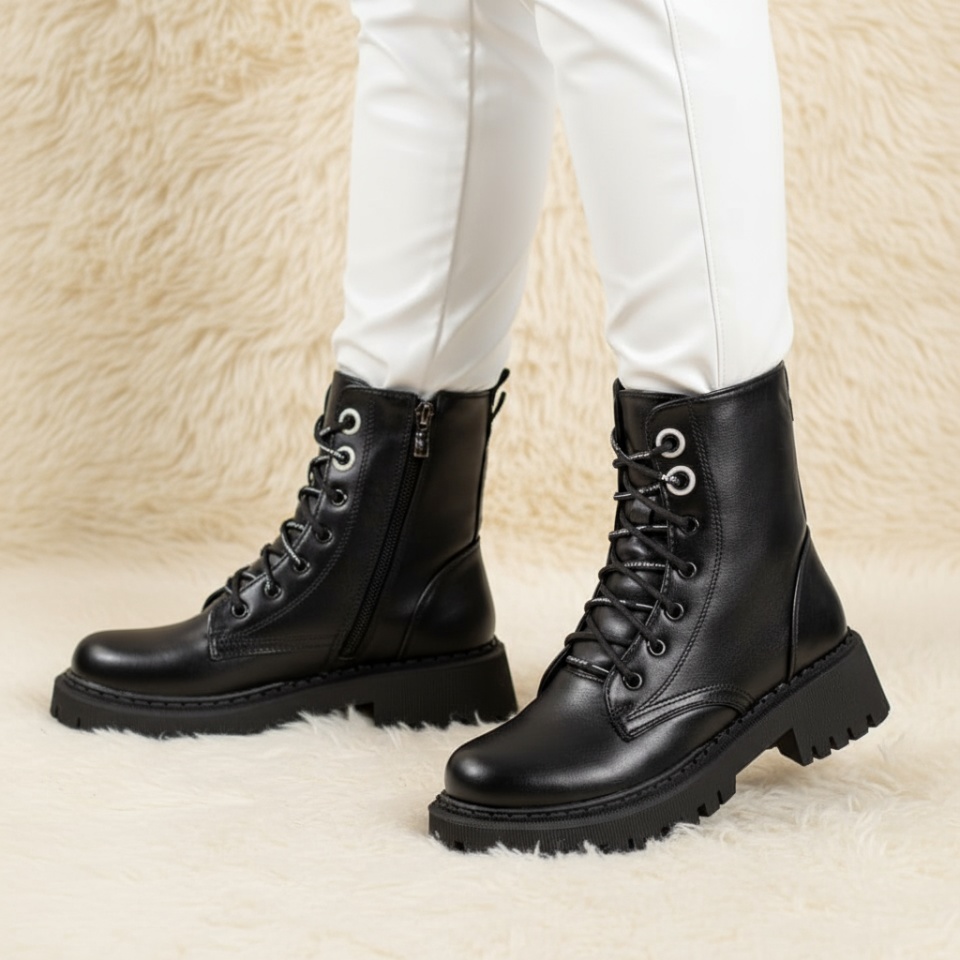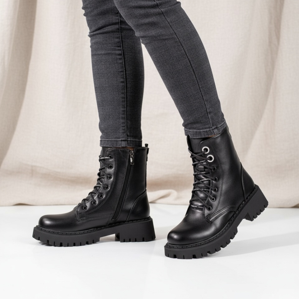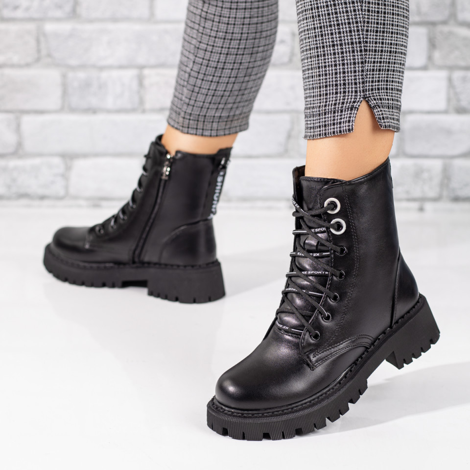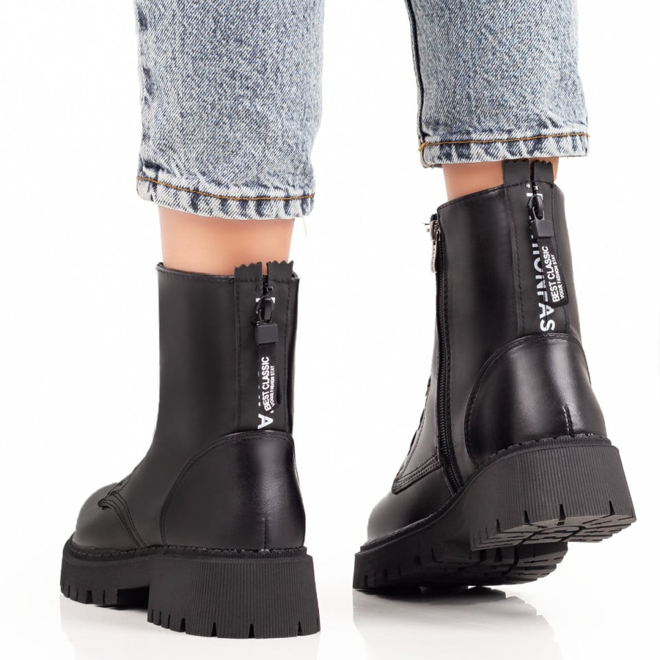 Ghete negre cu talpa groasa si fermoar decorativ la spate dama MOD07144