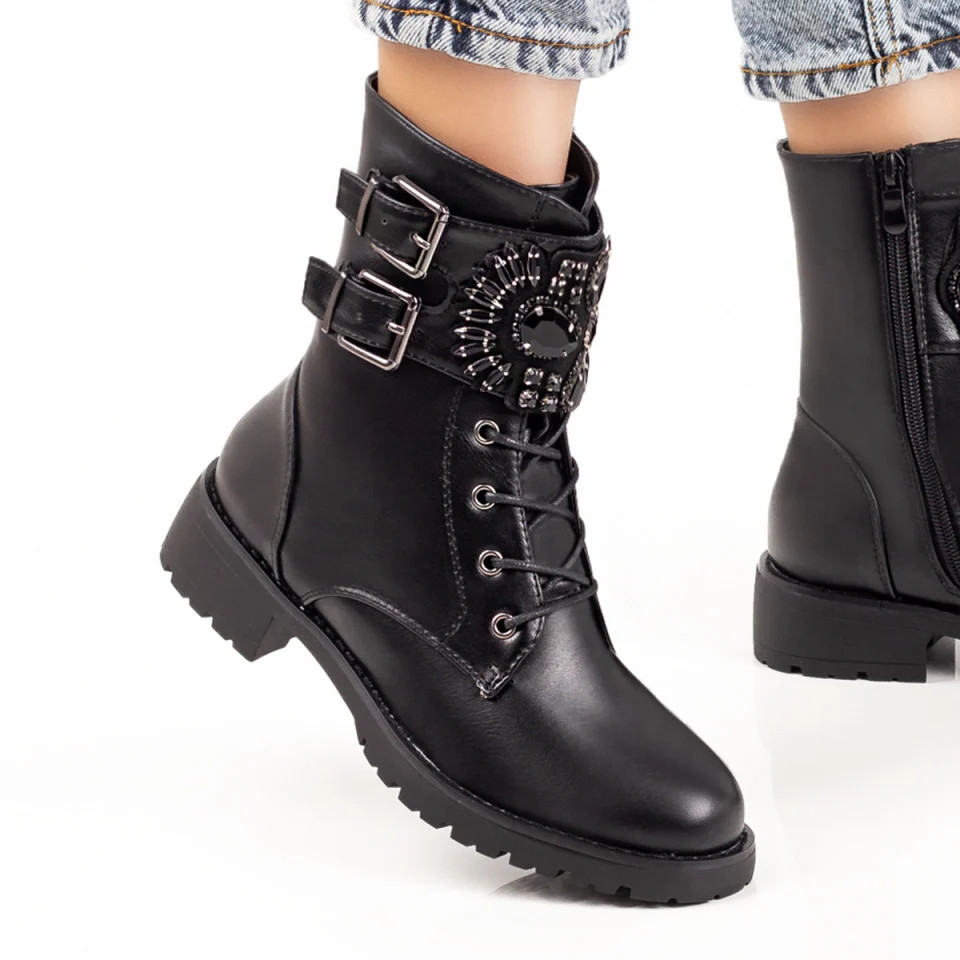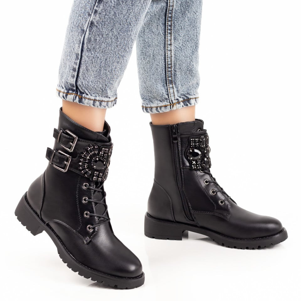Ghete negre dama cu siret si fermoar MOD07218