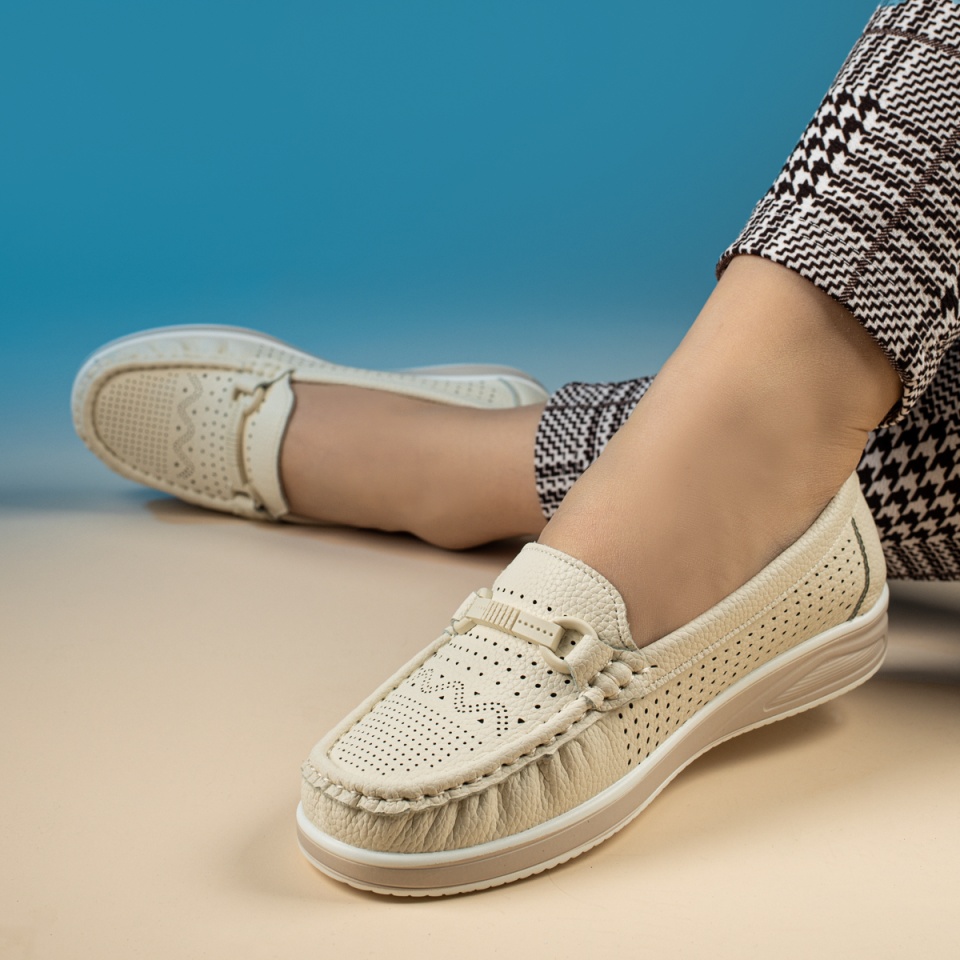 Mocasini dama cu perforatii bej MOD14236