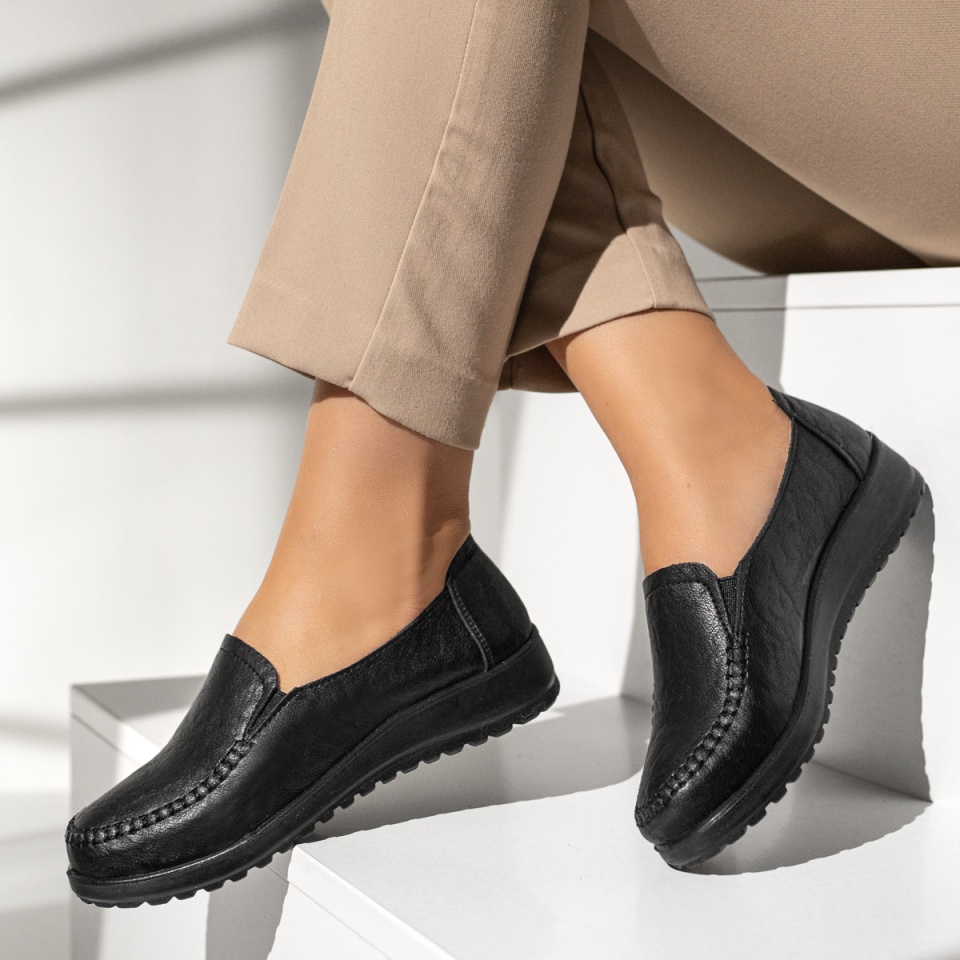 Pantofi casual dama cu insertie de material elastic negri MOD00220