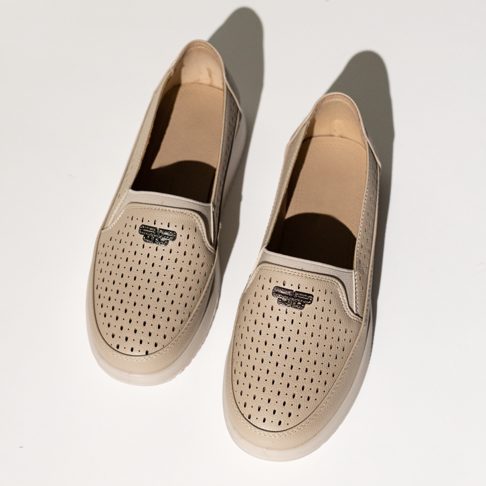 Pantofi casual dama cu platforma si perforatii bej MOD14242