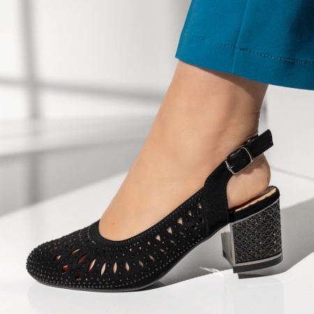 Tocul de aproximativ 6 cm oferă un plus de eleganță și contribuie la alungirea vizuală a siluetei. Această înălțime menține un echilibru bun între stil și confort pentru purtarea la evenimente.