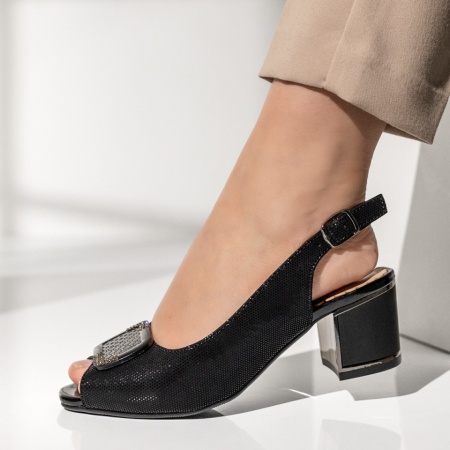 Pantofi dama cu toc gros decupati negri MOD14191